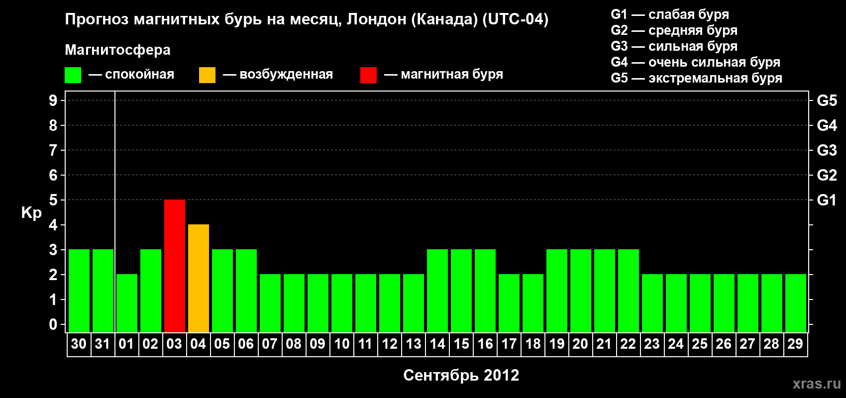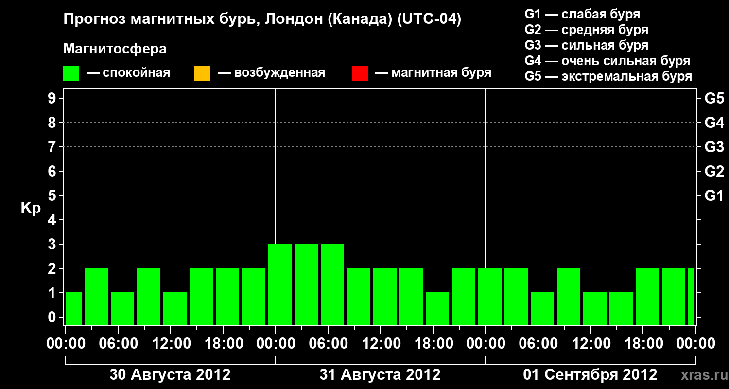 Прогноз магнитных бурь Лондоне (Канада) — 30 августа 2012 года