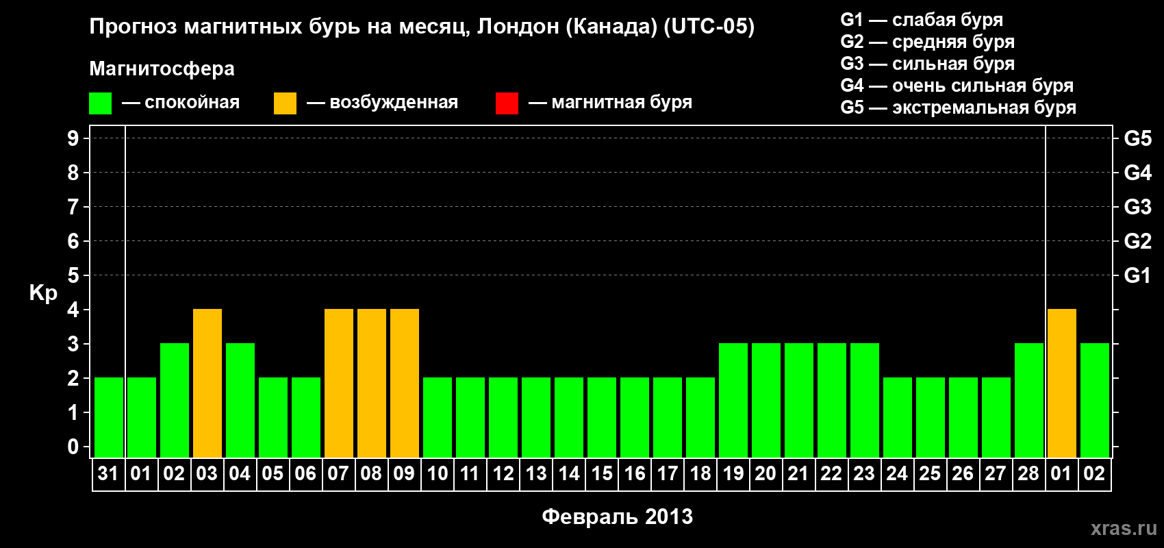 Прогноз магнитных бурь Лондоне (Канада) — 31 января 2013 года