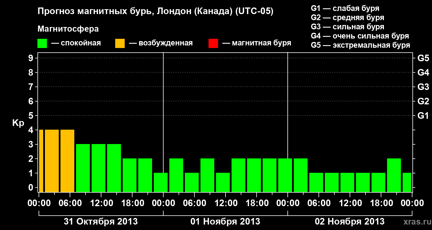 Прогноз магнитных бурь Лондоне (Канада) — 31 октября 2013 года