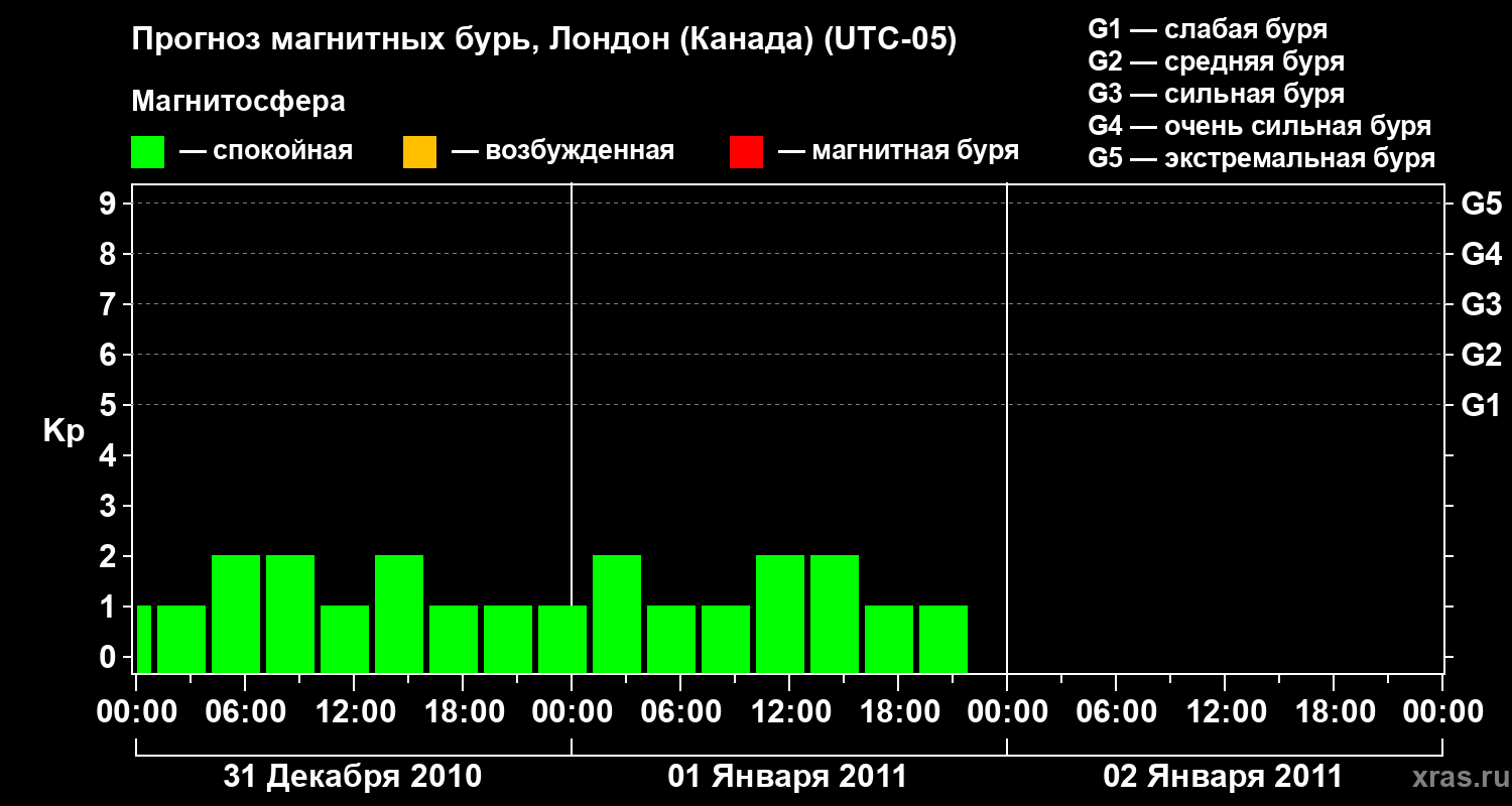 Прогноз магнитных бурь Лондоне (Канада) — 31 декабря 2010 года