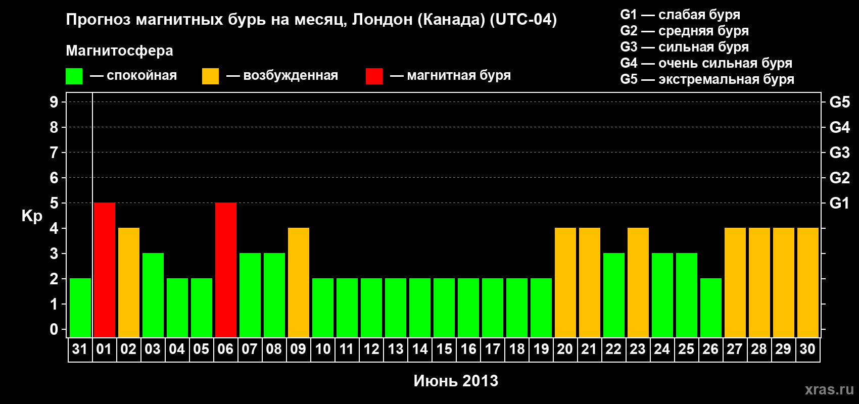 Прогноз магнитных бурь Лондоне (Канада) — 31 мая 2013 года