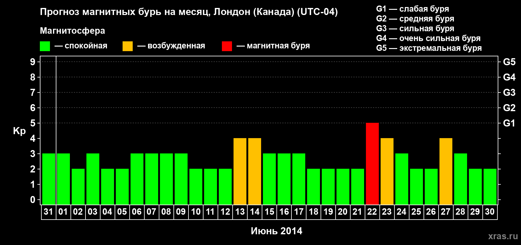Прогноз магнитных бурь Лондоне (Канада) — 31 мая 2014 года