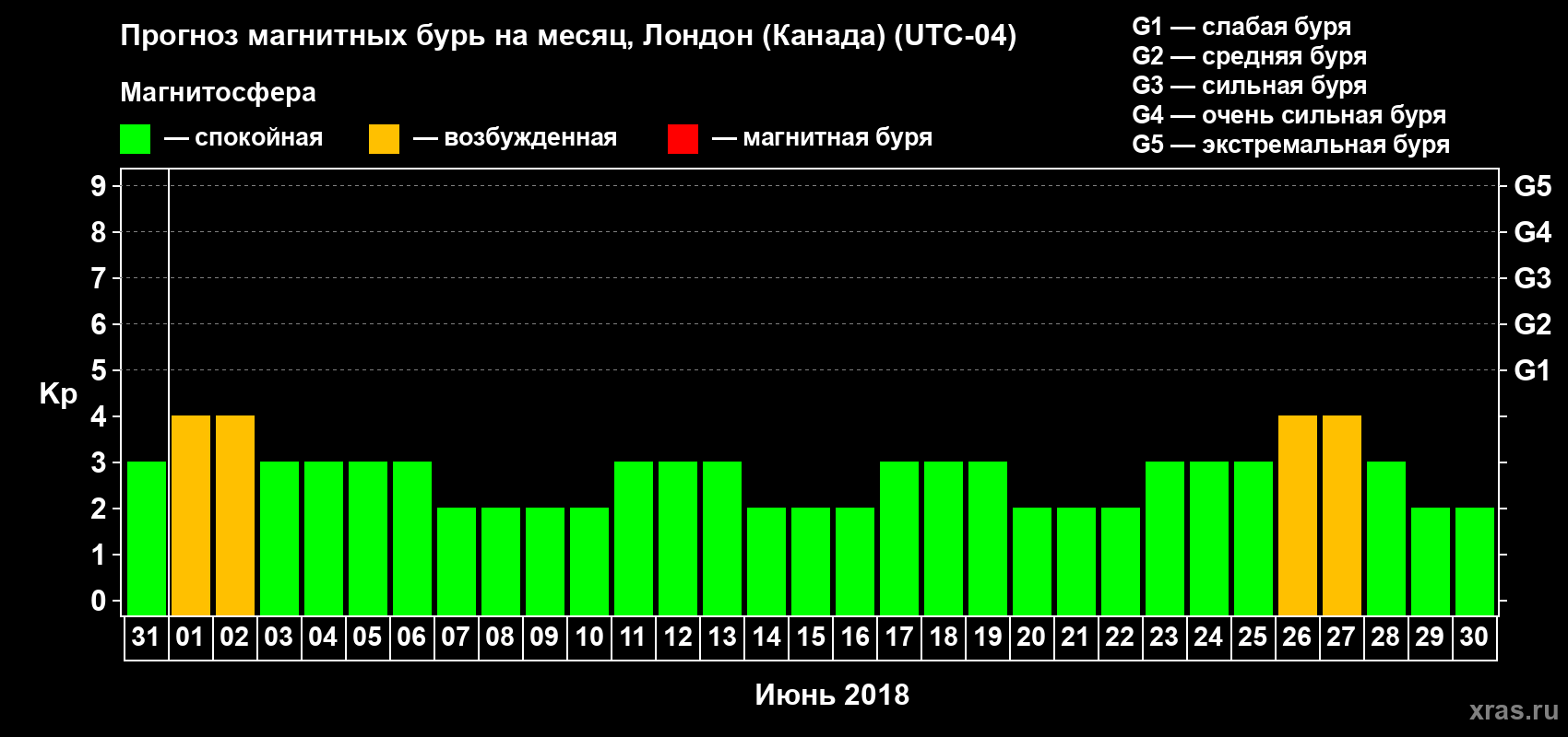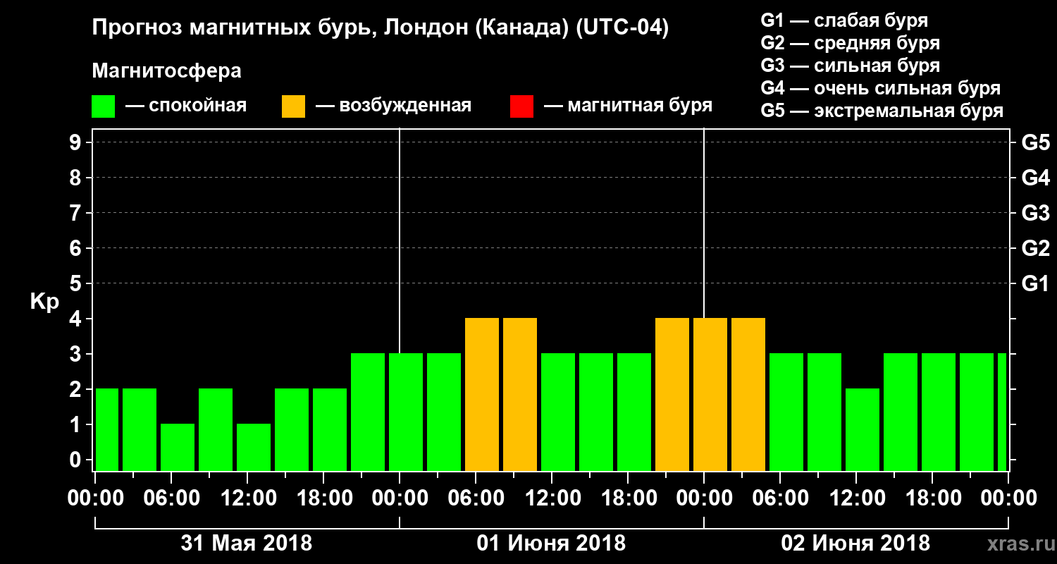Прогноз магнитных бурь Лондоне (Канада) — 31 мая 2018 года