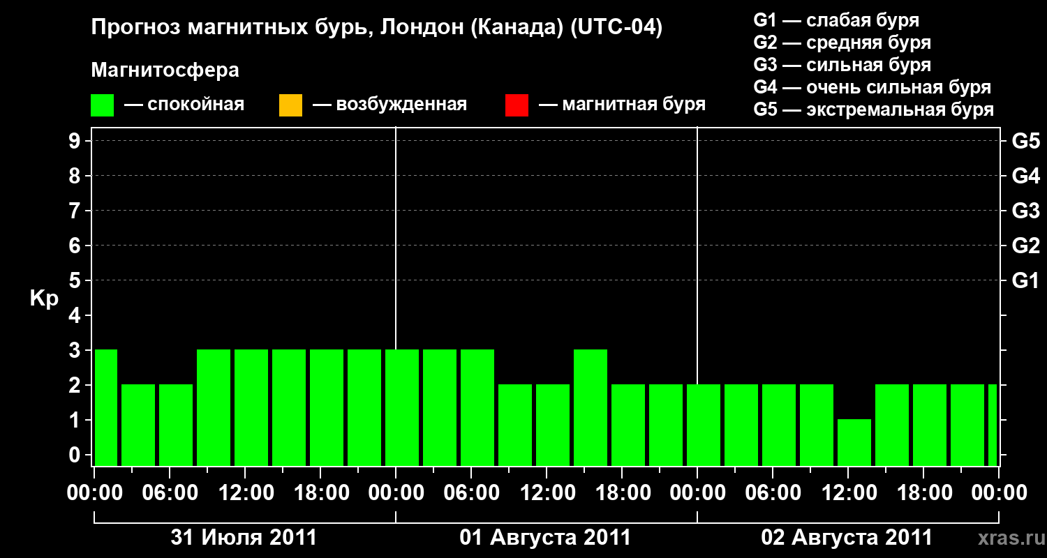 Прогноз магнитных бурь Лондоне (Канада) — 31 июля 2011 года