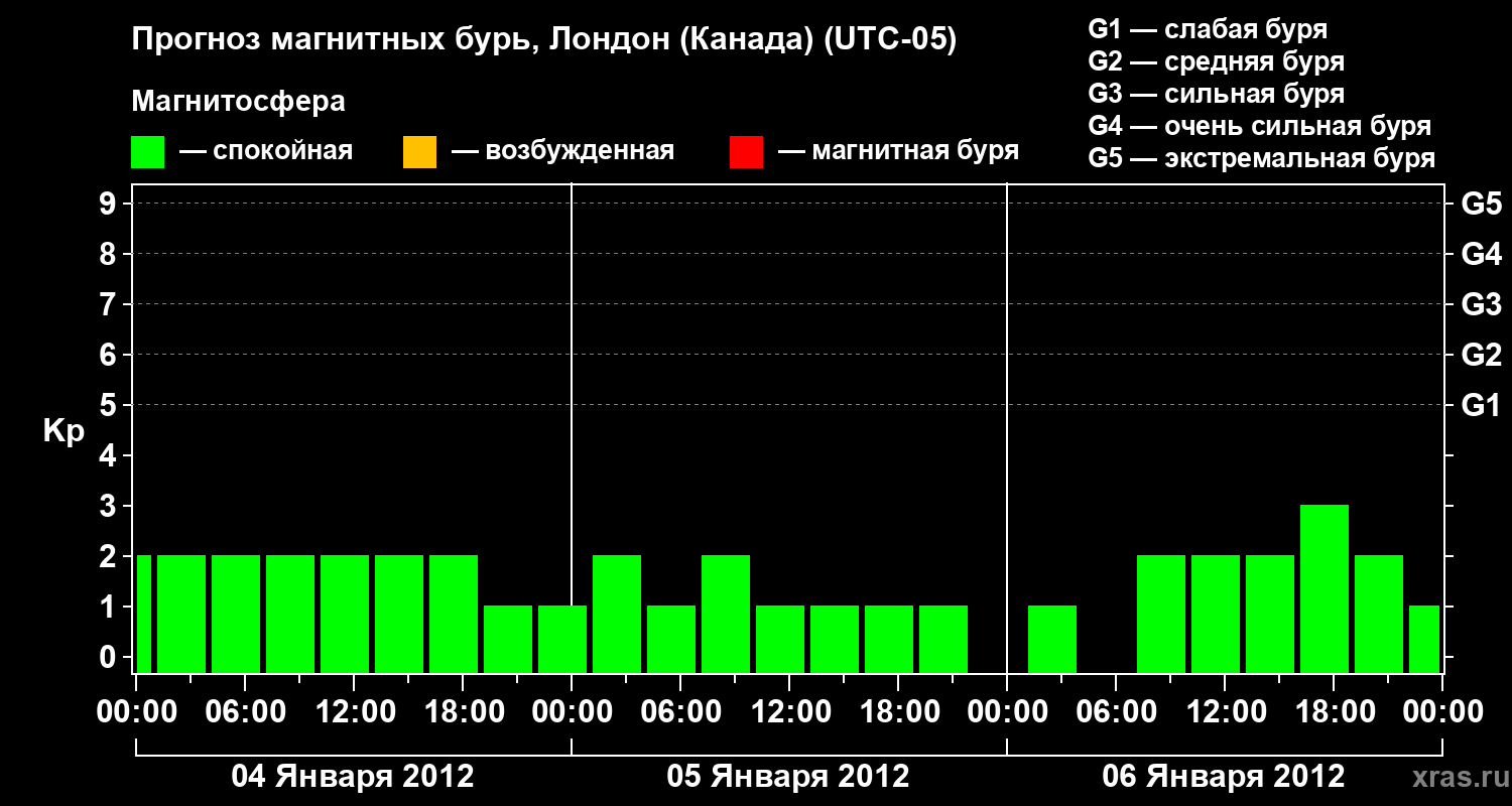 Прогноз магнитных бурь Лондоне (Канада) — 4 января 2012 года