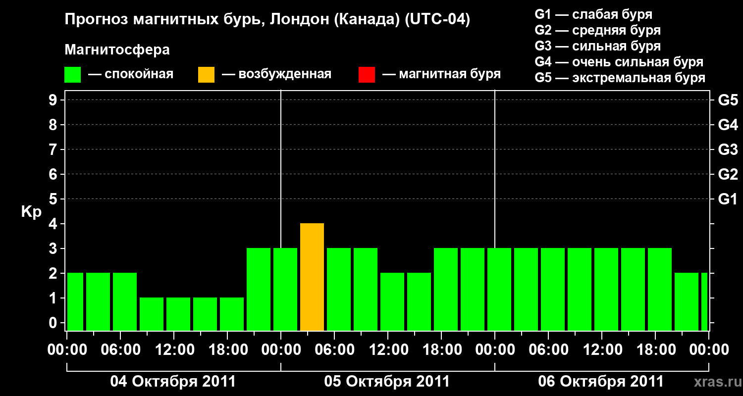 Прогноз магнитных бурь Лондоне (Канада) — 4 октября 2011 года