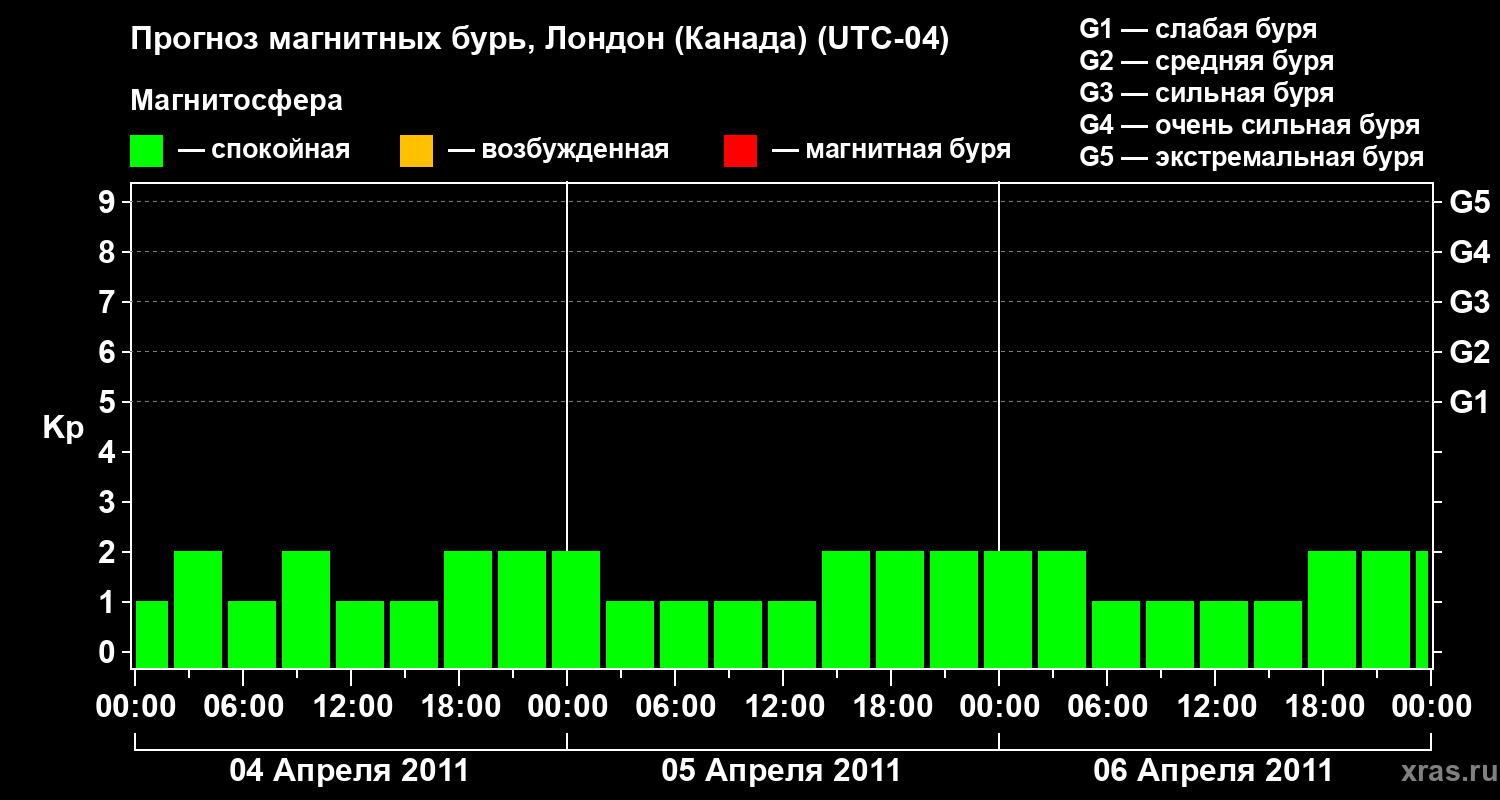 Прогноз магнитных бурь Лондоне (Канада) — 4 апреля 2011 года