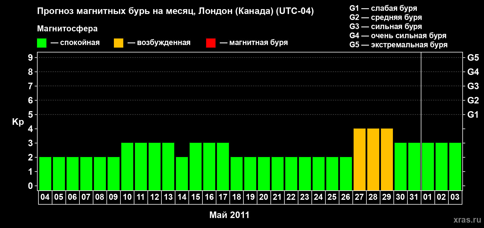 Прогноз магнитных бурь Лондоне (Канада) — 4 мая 2011 года
