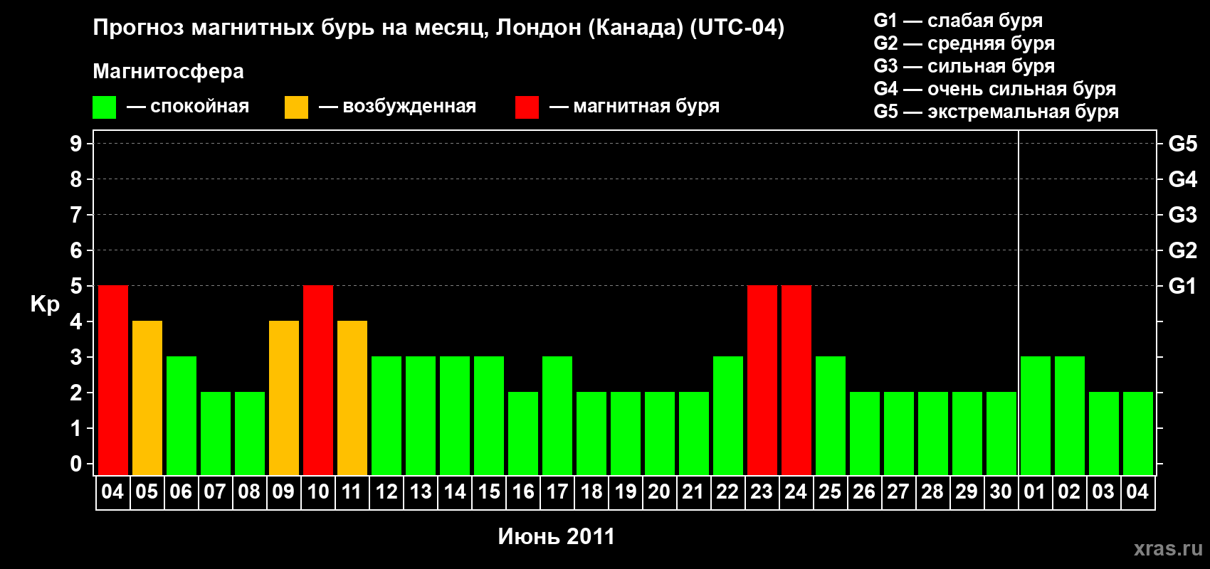 Прогноз магнитных бурь Лондоне (Канада) на 4 июня 2011 года