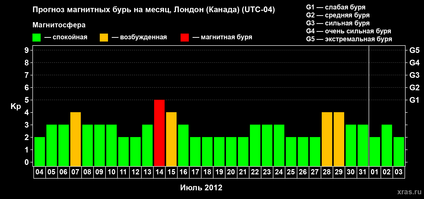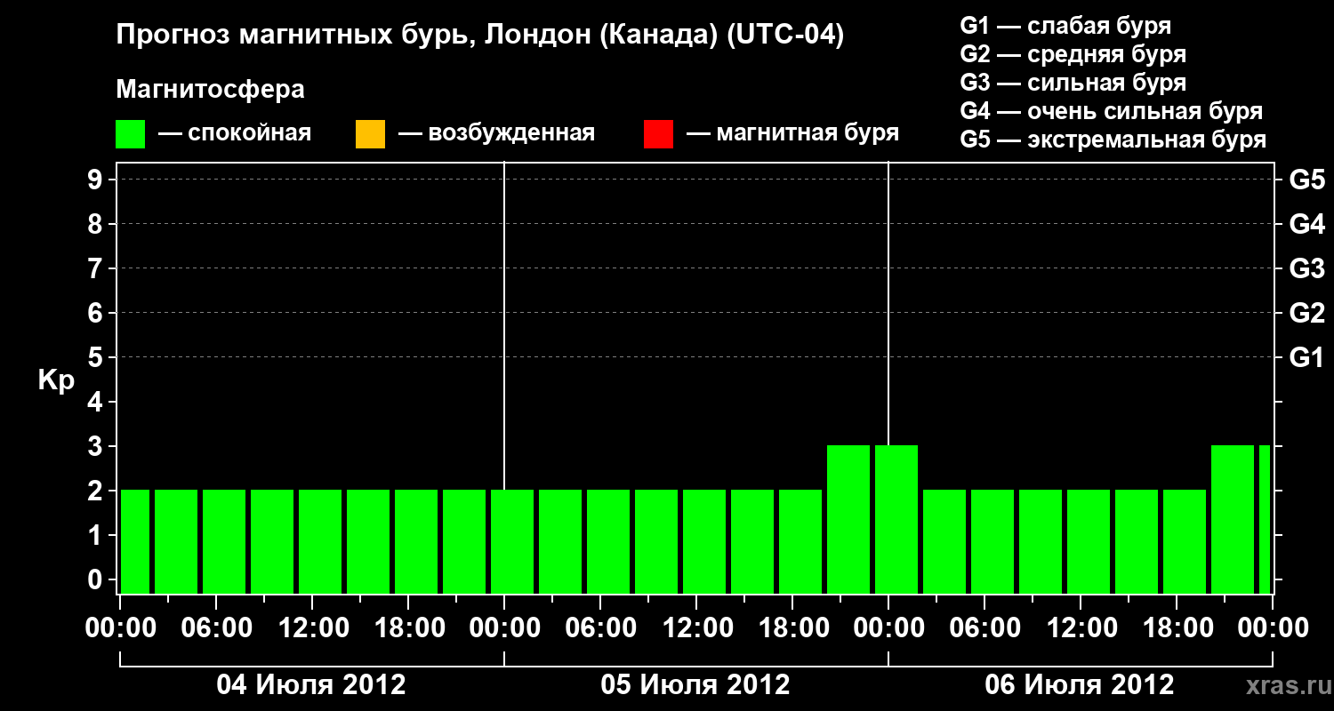 Прогноз магнитных бурь Лондоне (Канада) — 4 июля 2012 года