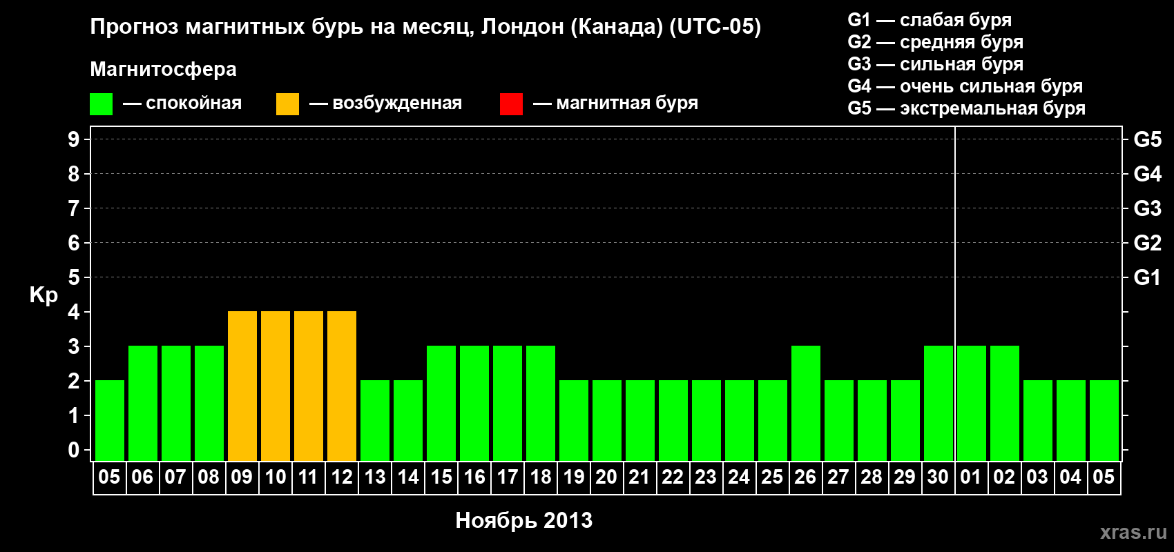 Прогноз магнитных бурь Лондоне (Канада) — 5 ноября 2013 года