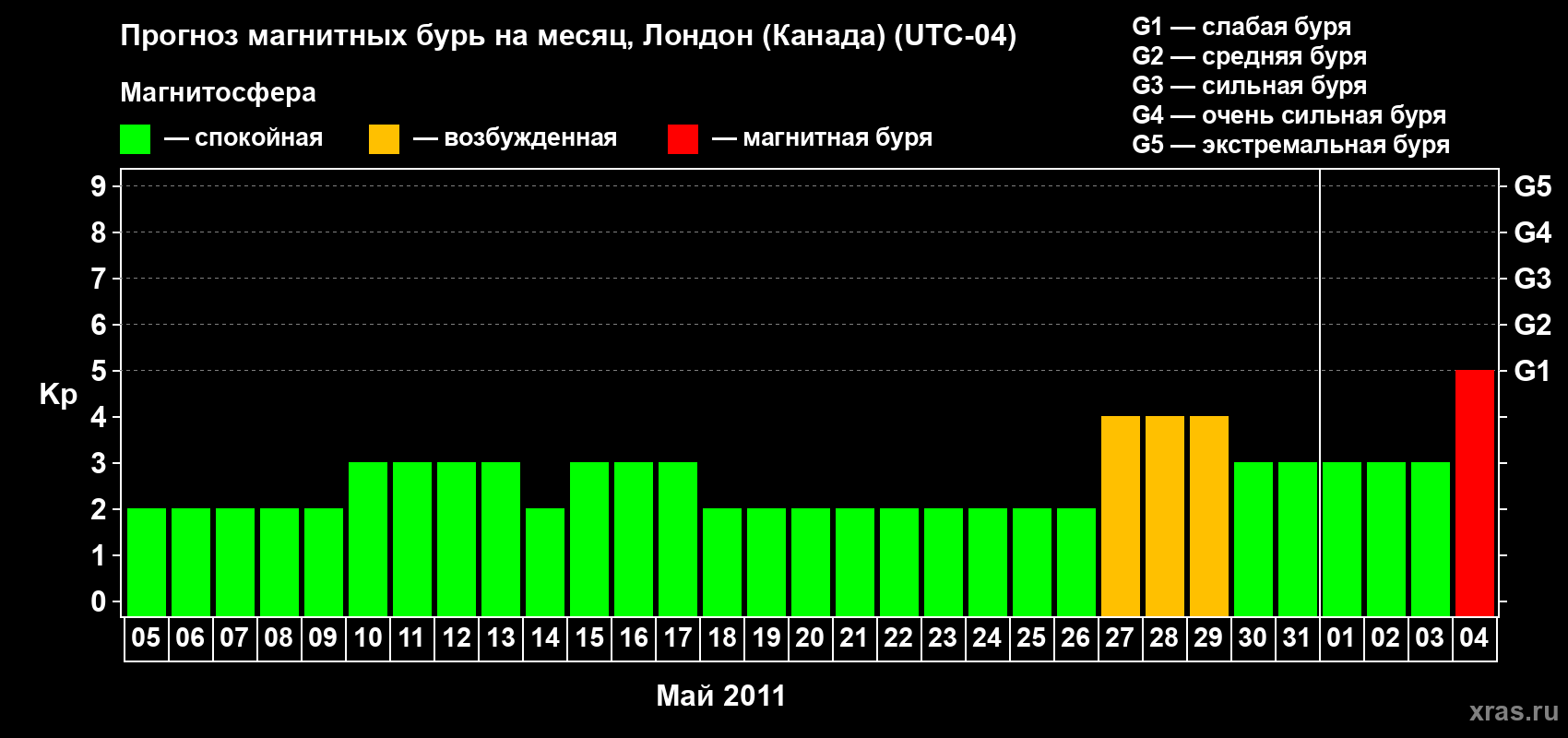 Прогноз магнитных бурь Лондоне (Канада) — 5 мая 2011 года
