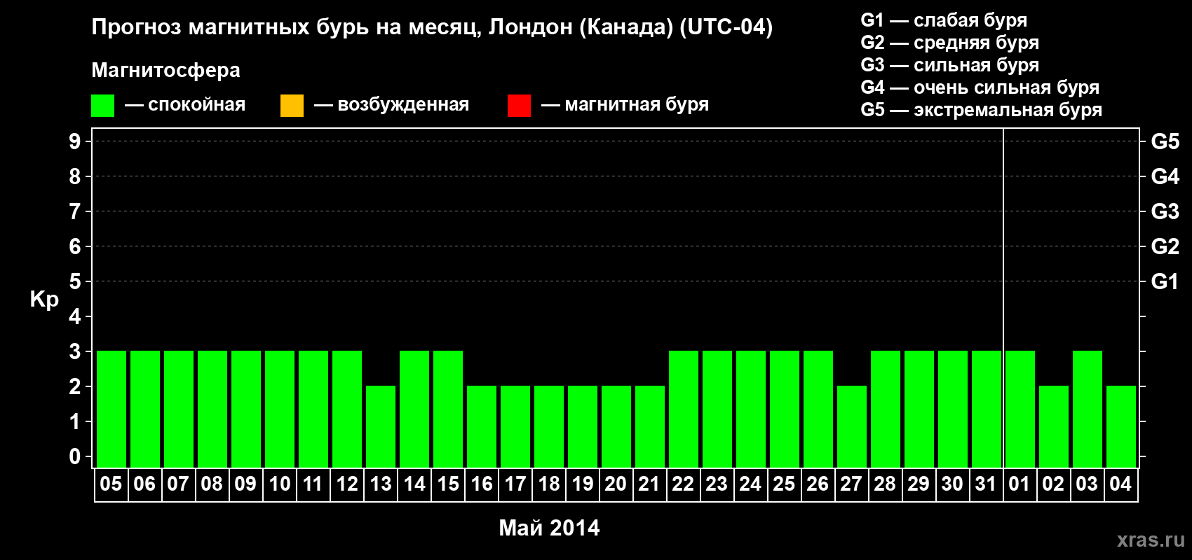 Прогноз магнитных бурь Лондоне (Канада) — 5 мая 2014 года