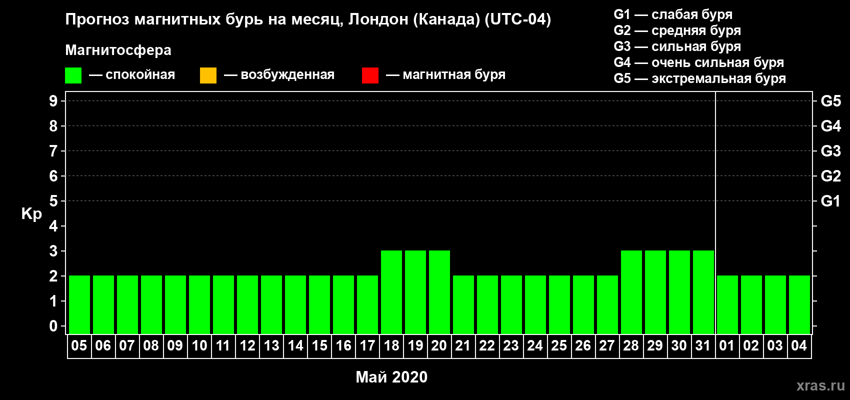 Прогноз магнитных бурь Лондоне (Канада) — 5 мая 2020 года