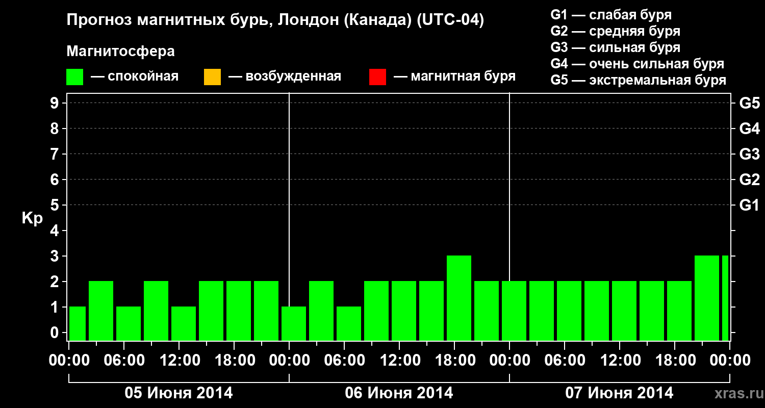 Прогноз магнитных бурь Лондоне (Канада) — 5 июня 2014 года