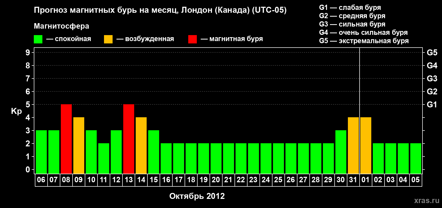 Прогноз магнитных бурь Лондоне (Канада) — 6 октября 2012 года