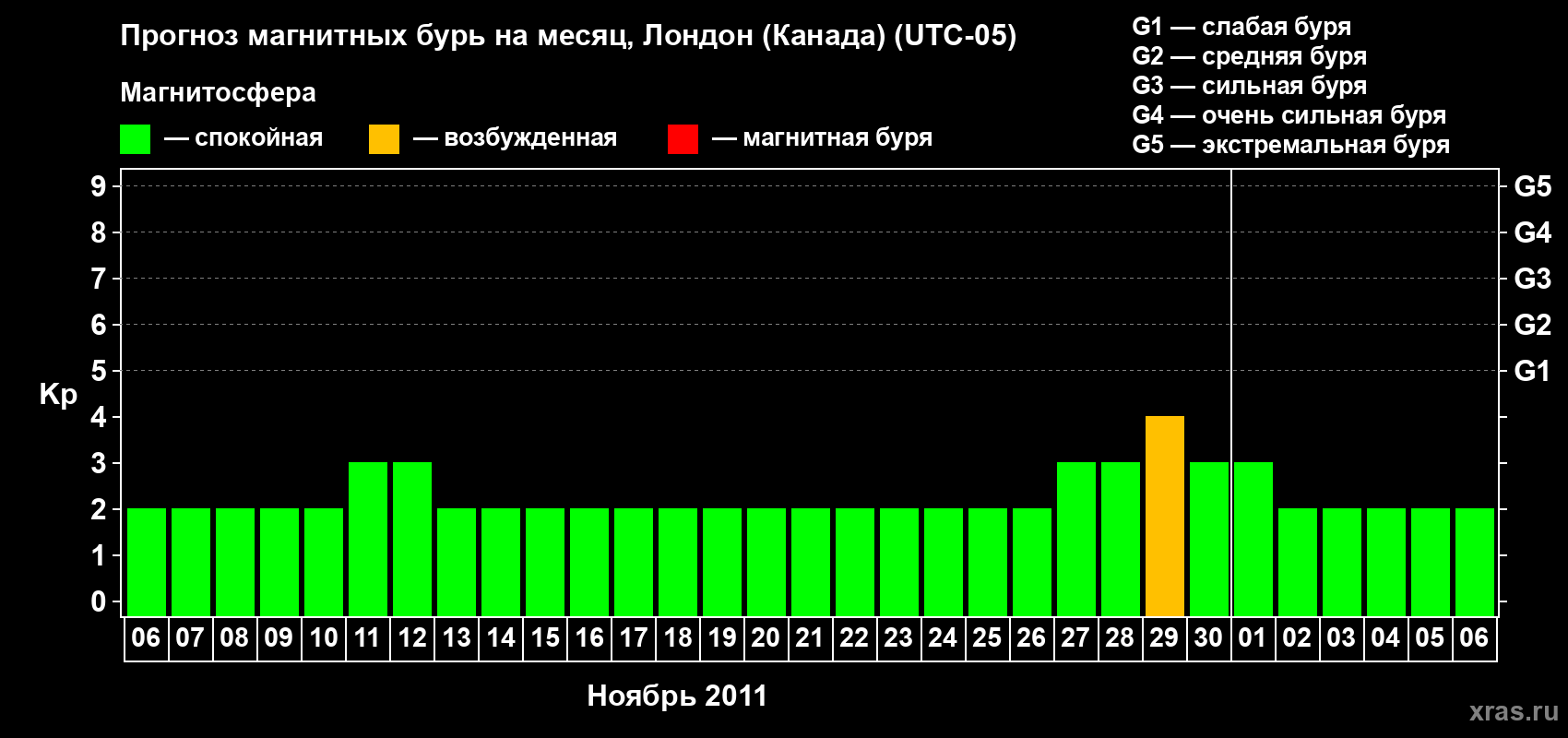 Прогноз магнитных бурь Лондоне (Канада) — 6 ноября 2011 года