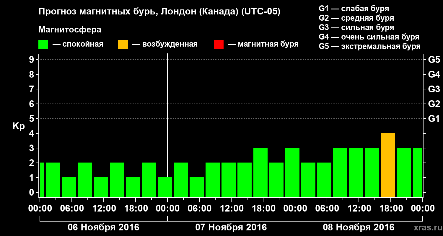 Прогноз магнитных бурь Лондоне (Канада) — 6 ноября 2016 года