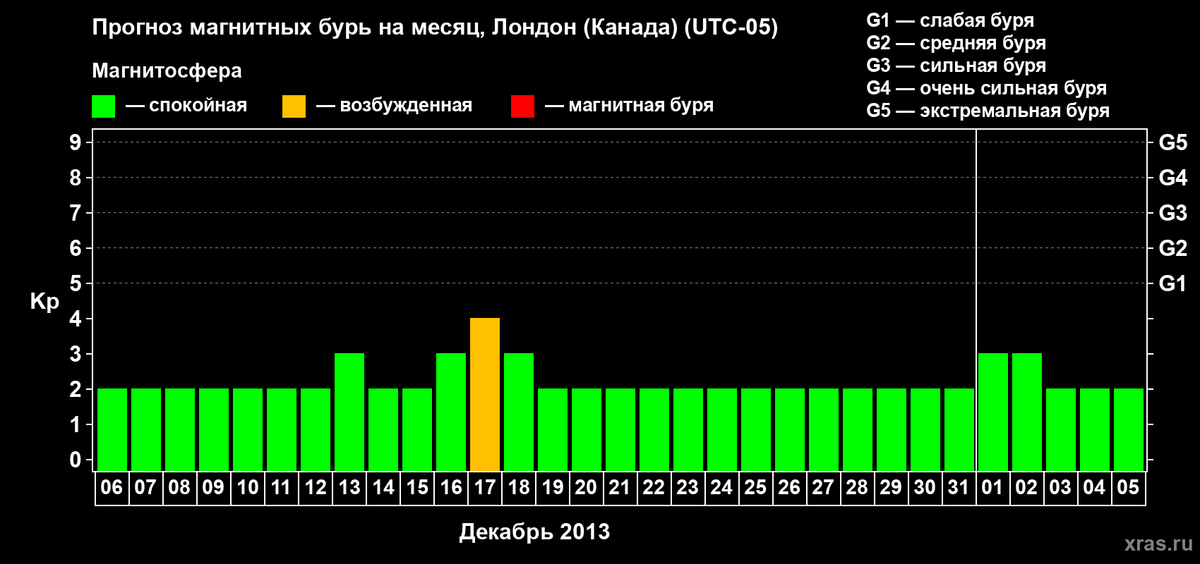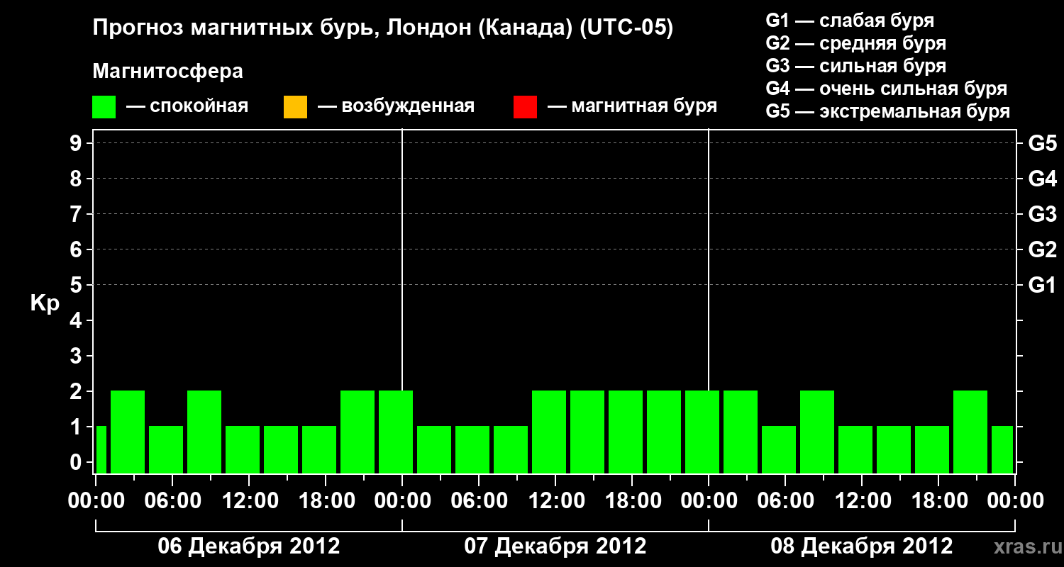 Прогноз магнитных бурь Лондоне (Канада) — 6 декабря 2012 года