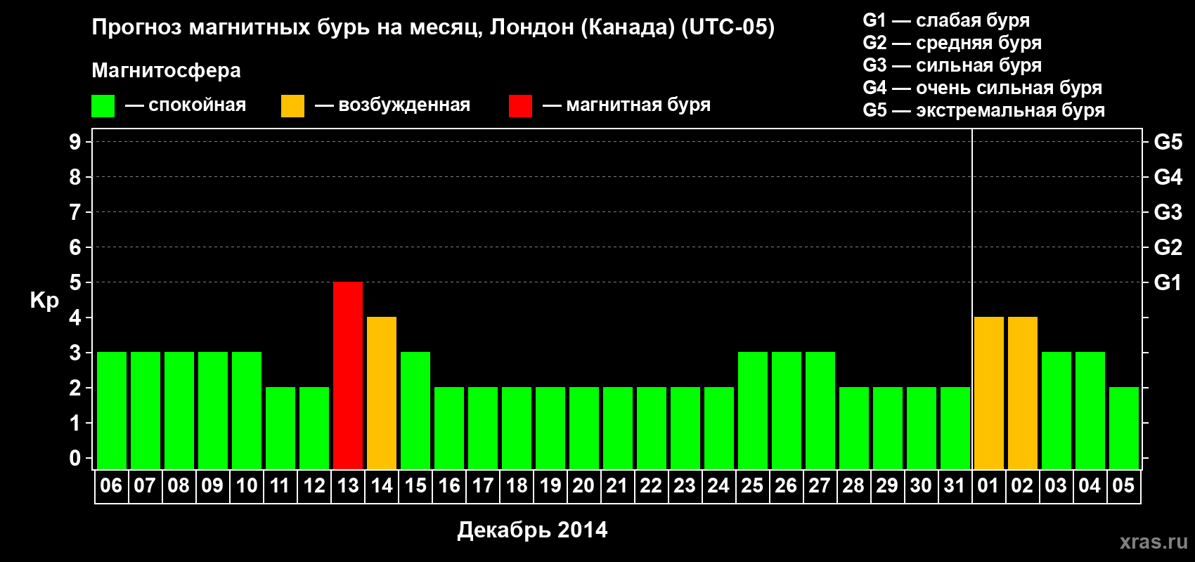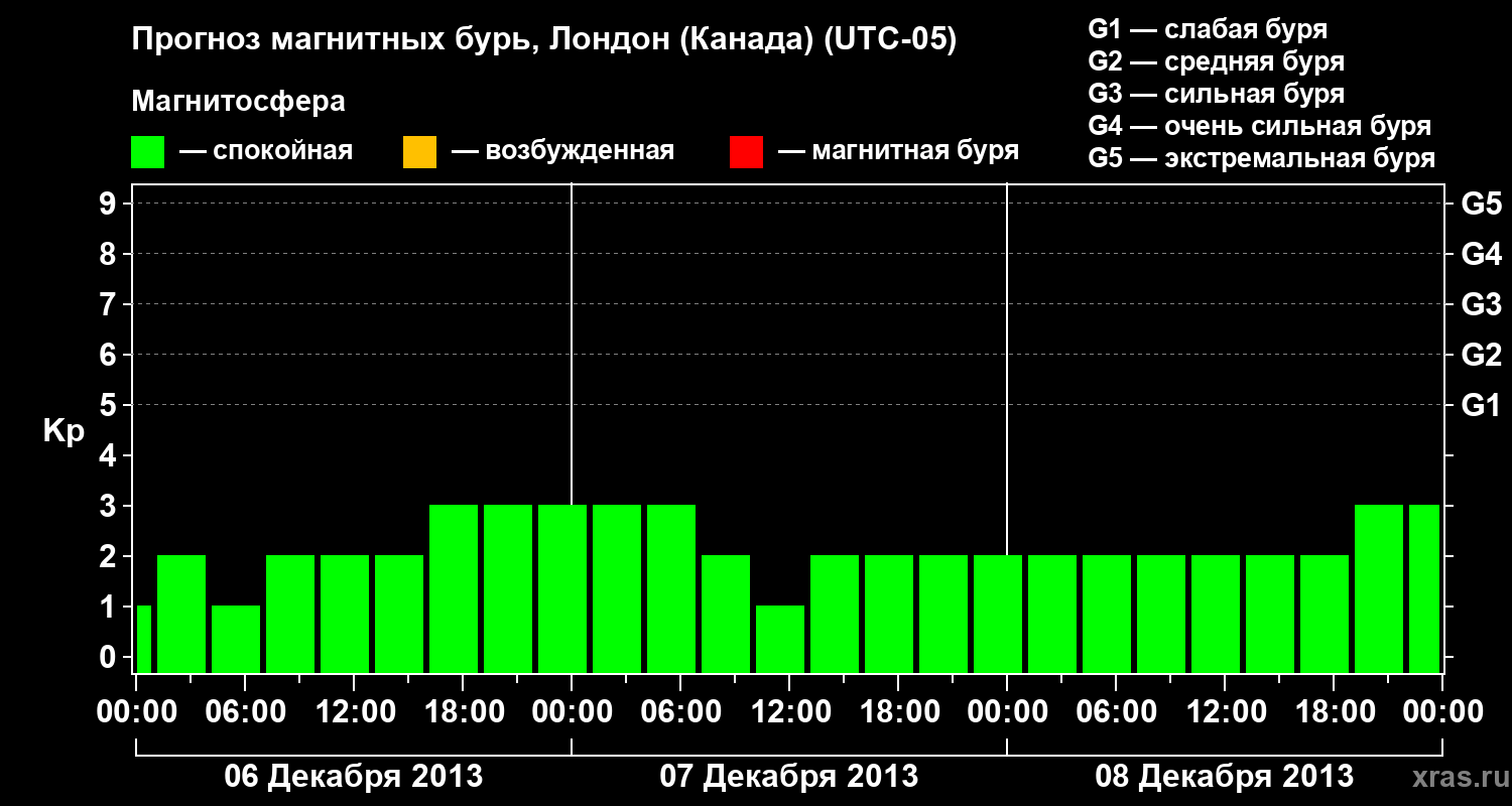 Прогноз магнитных бурь Лондоне (Канада) — 6 декабря 2013 года