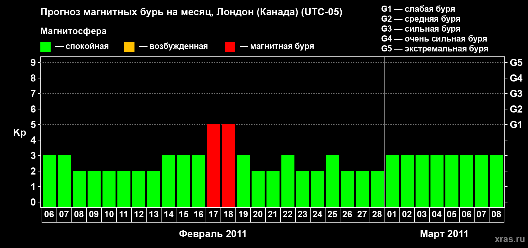 Прогноз магнитных бурь Лондоне (Канада) — 6 февраля 2011 года