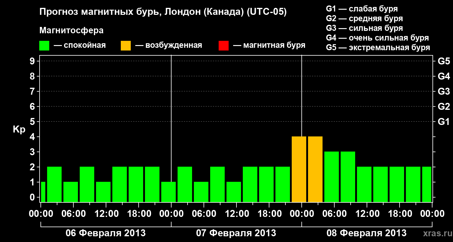 Прогноз магнитных бурь Лондоне (Канада) — 6 февраля 2013 года