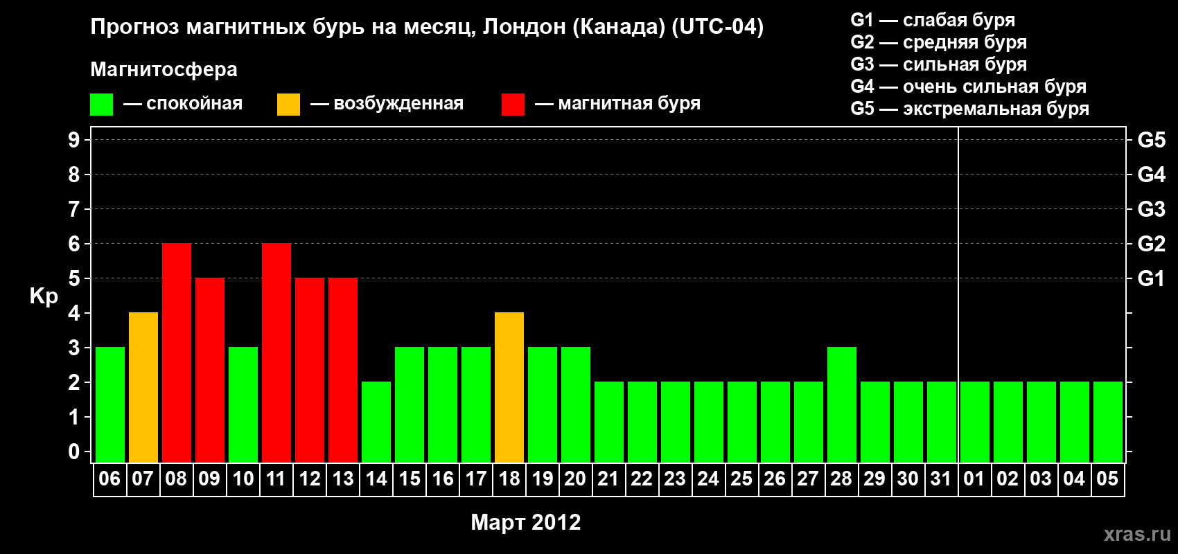 Прогноз магнитных бурь Лондоне (Канада) — 6 марта 2012 года