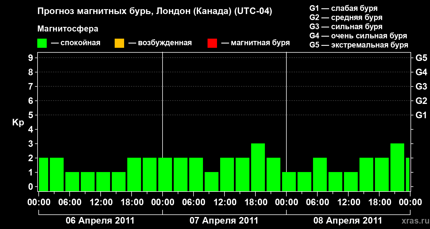 Прогноз магнитных бурь Лондоне (Канада) — 6 апреля 2011 года