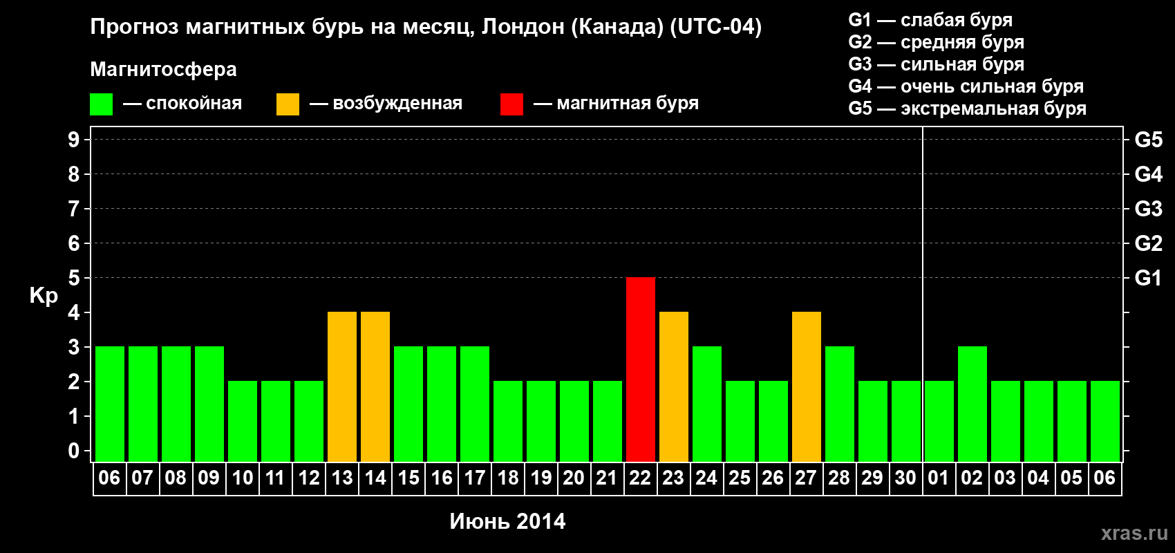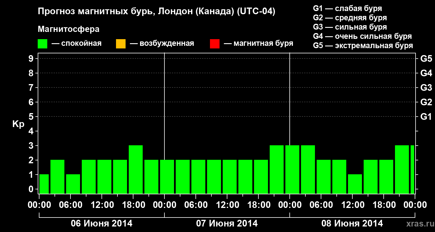 Прогноз магнитных бурь Лондоне (Канада) — 6 июня 2014 года