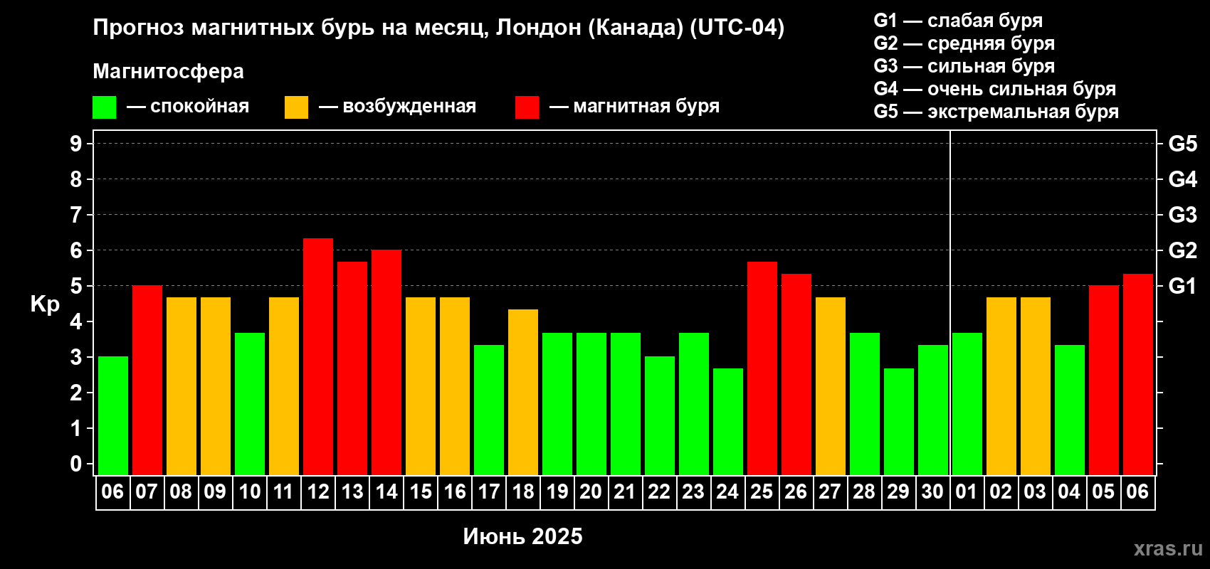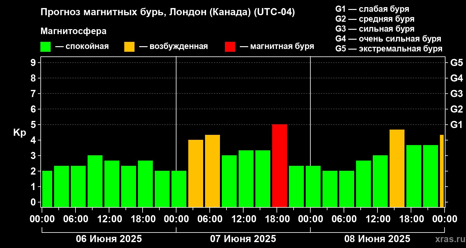 Прогноз магнитных бурь Лондоне (Канада) — 6 июня 2025 года