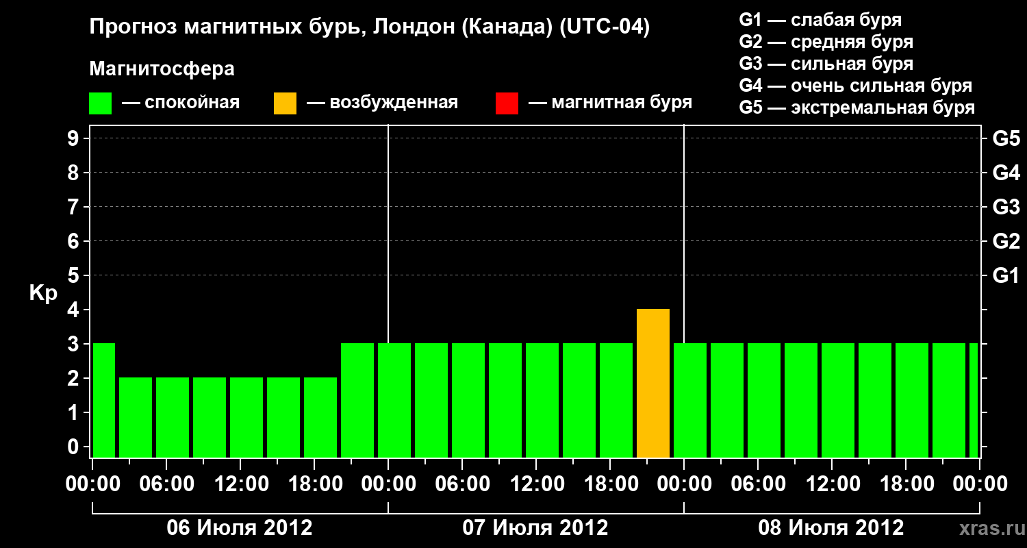 Прогноз магнитных бурь Лондоне (Канада) — 6 июля 2012 года