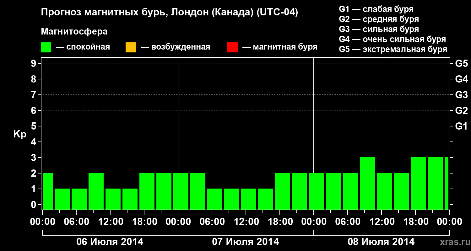Прогноз магнитных бурь Лондоне (Канада) — 6 июля 2014 года