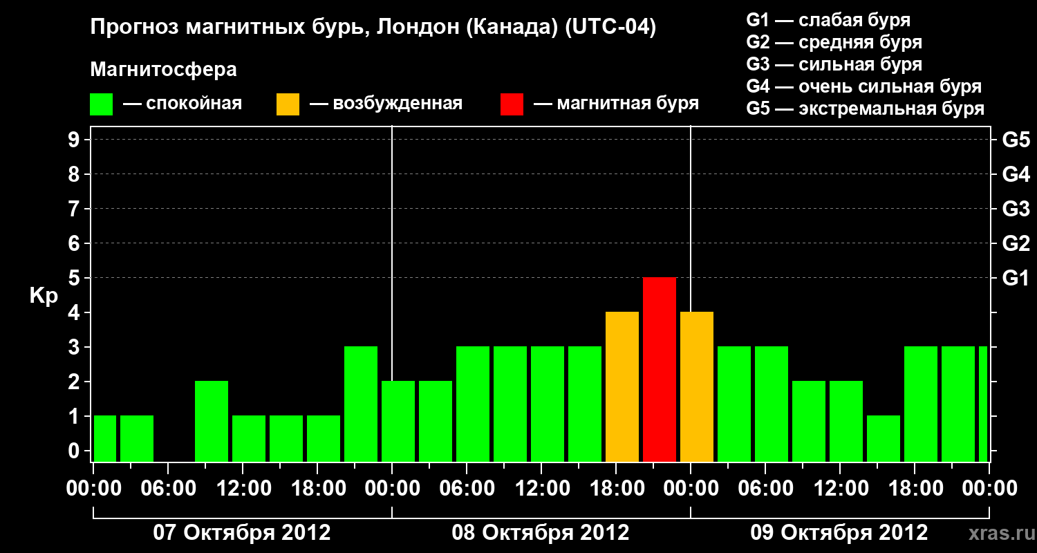 Прогноз магнитных бурь Лондоне (Канада) — 7 октября 2012 года