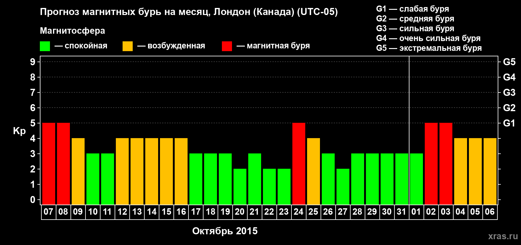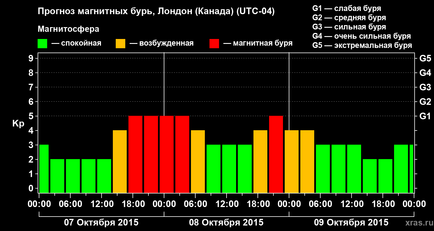 Прогноз магнитных бурь Лондоне (Канада) — 7 октября 2015 года