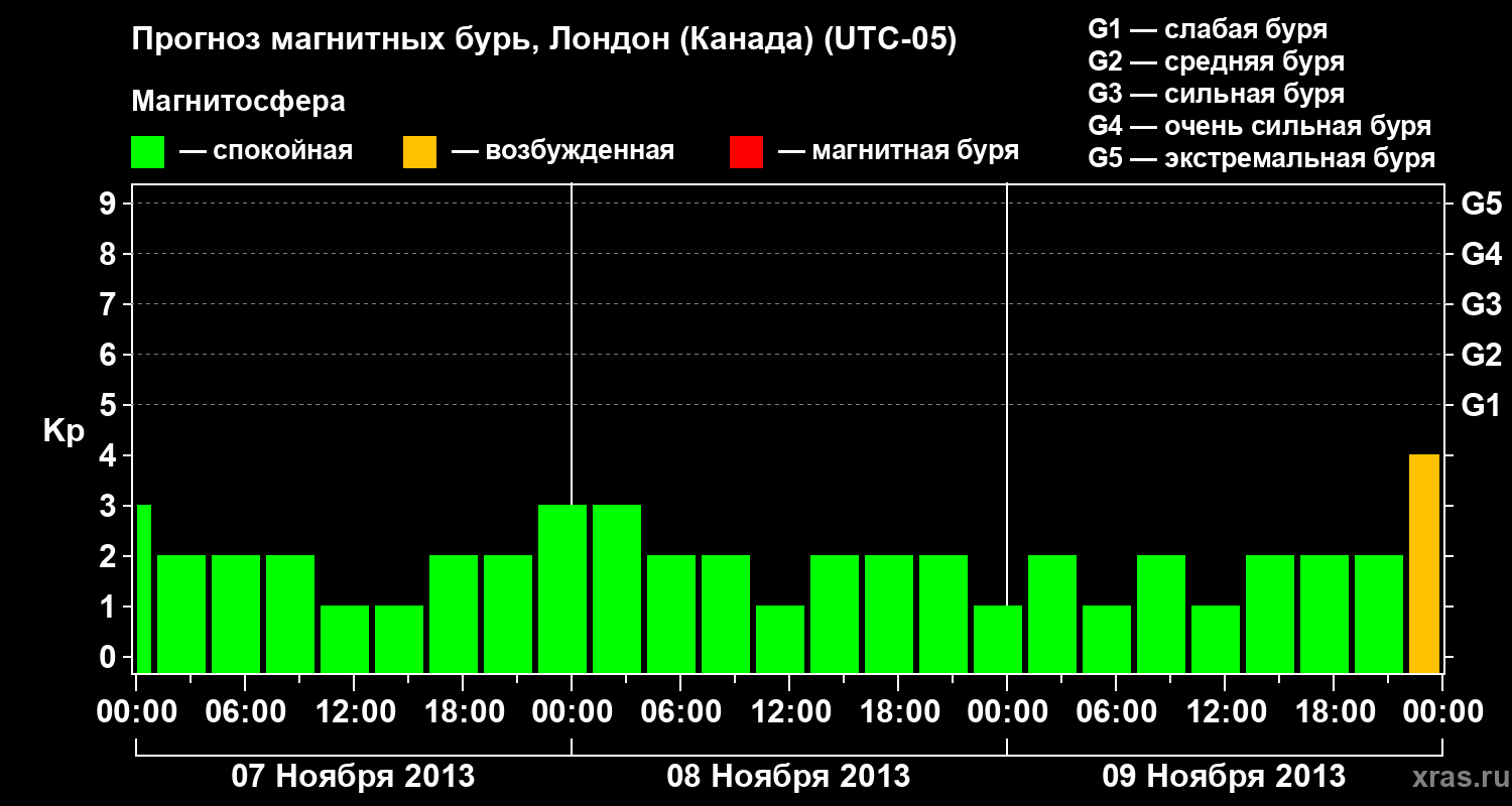 Прогноз магнитных бурь Лондоне (Канада) — 7 ноября 2013 года