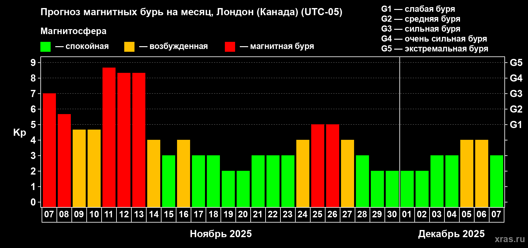 Прогноз магнитных бурь Лондоне (Канада) — 7 ноября 2025 года