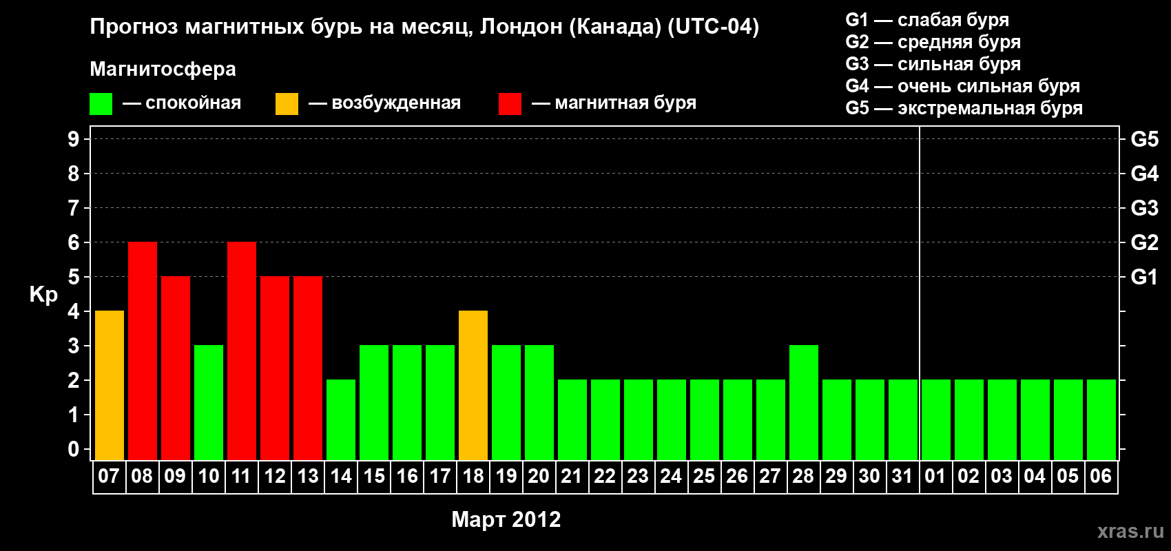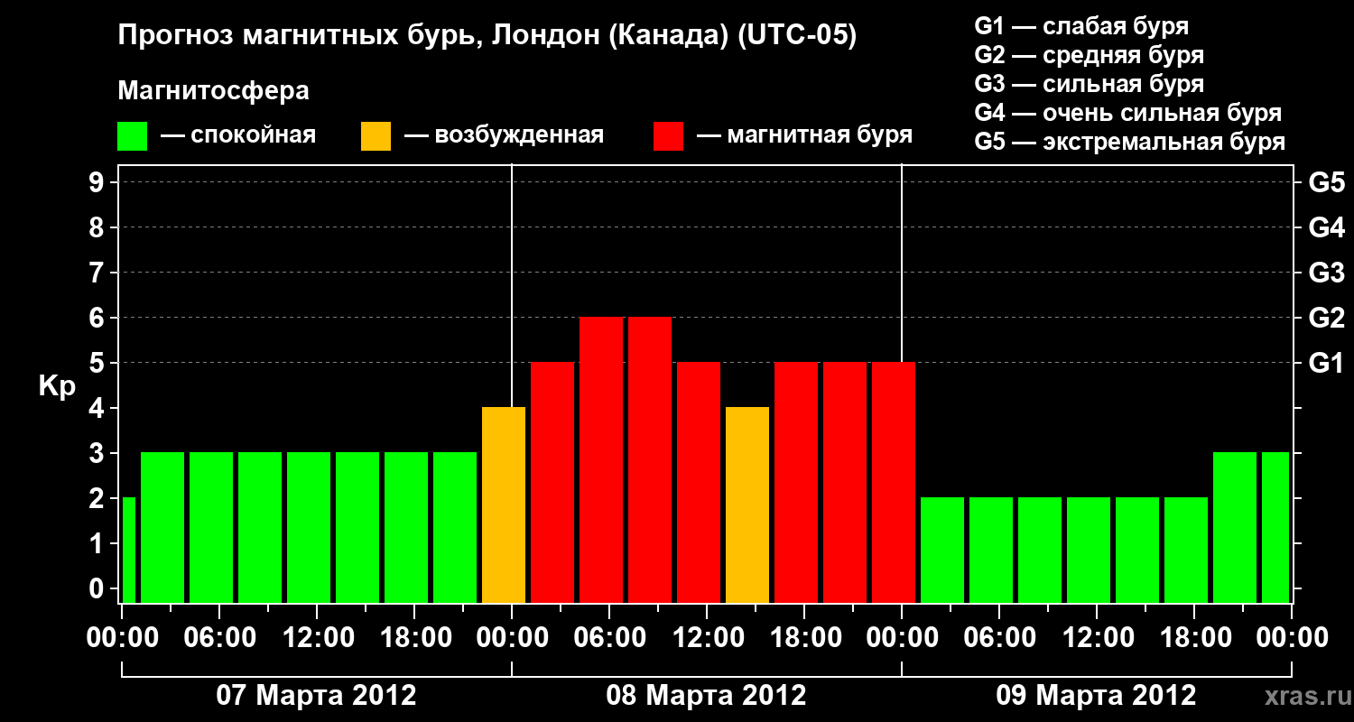 Прогноз магнитных бурь Лондоне (Канада) — 7 марта 2012 года
