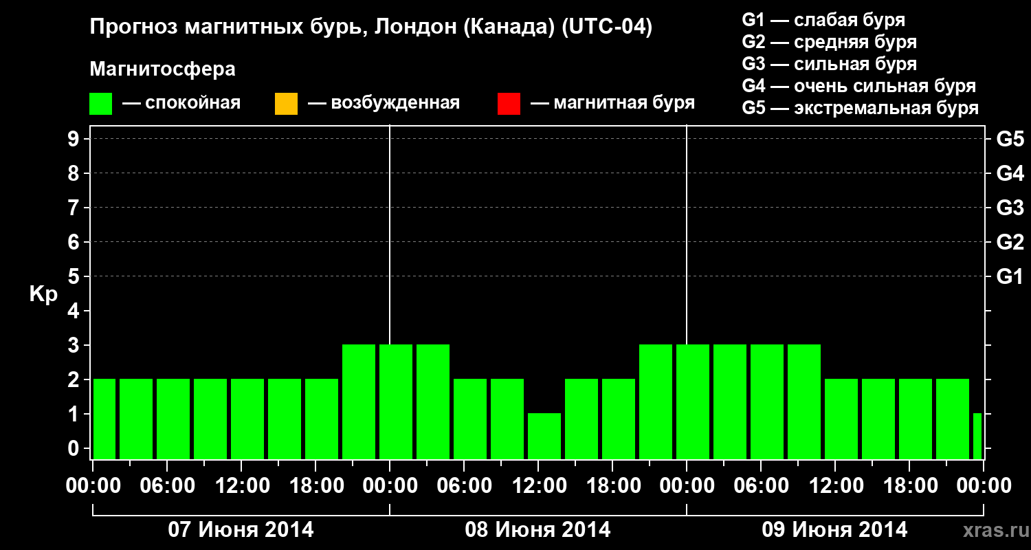 Прогноз магнитных бурь Лондоне (Канада) — 7 июня 2014 года