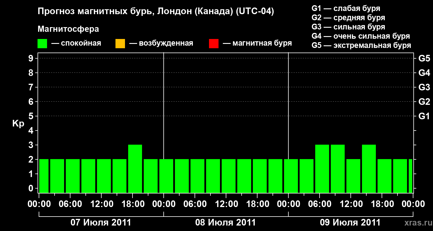 Прогноз магнитных бурь Лондоне (Канада) — 7 июля 2011 года