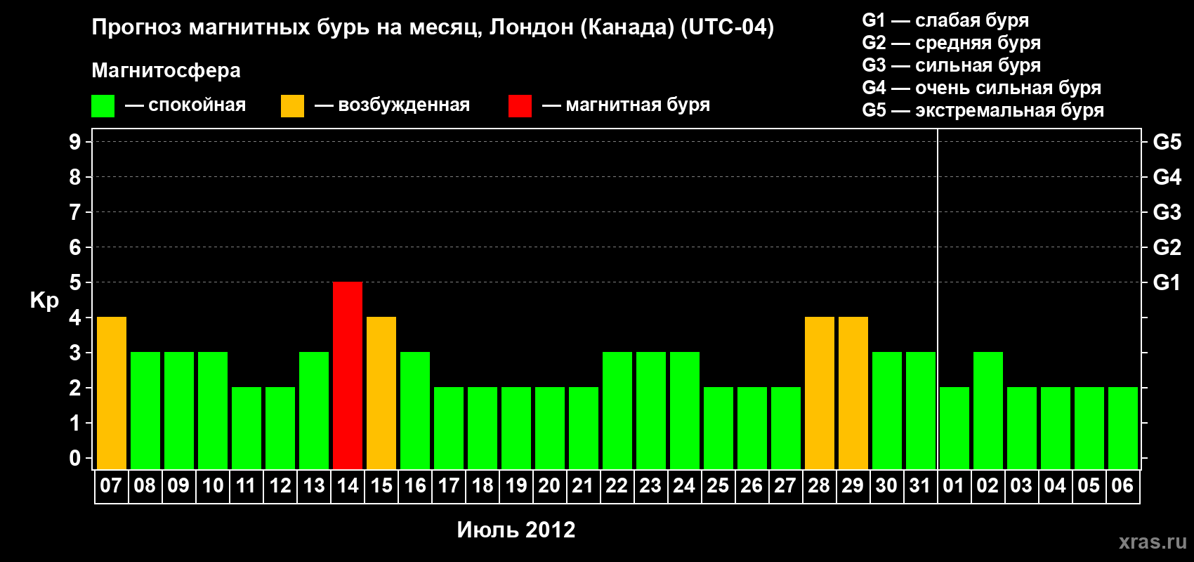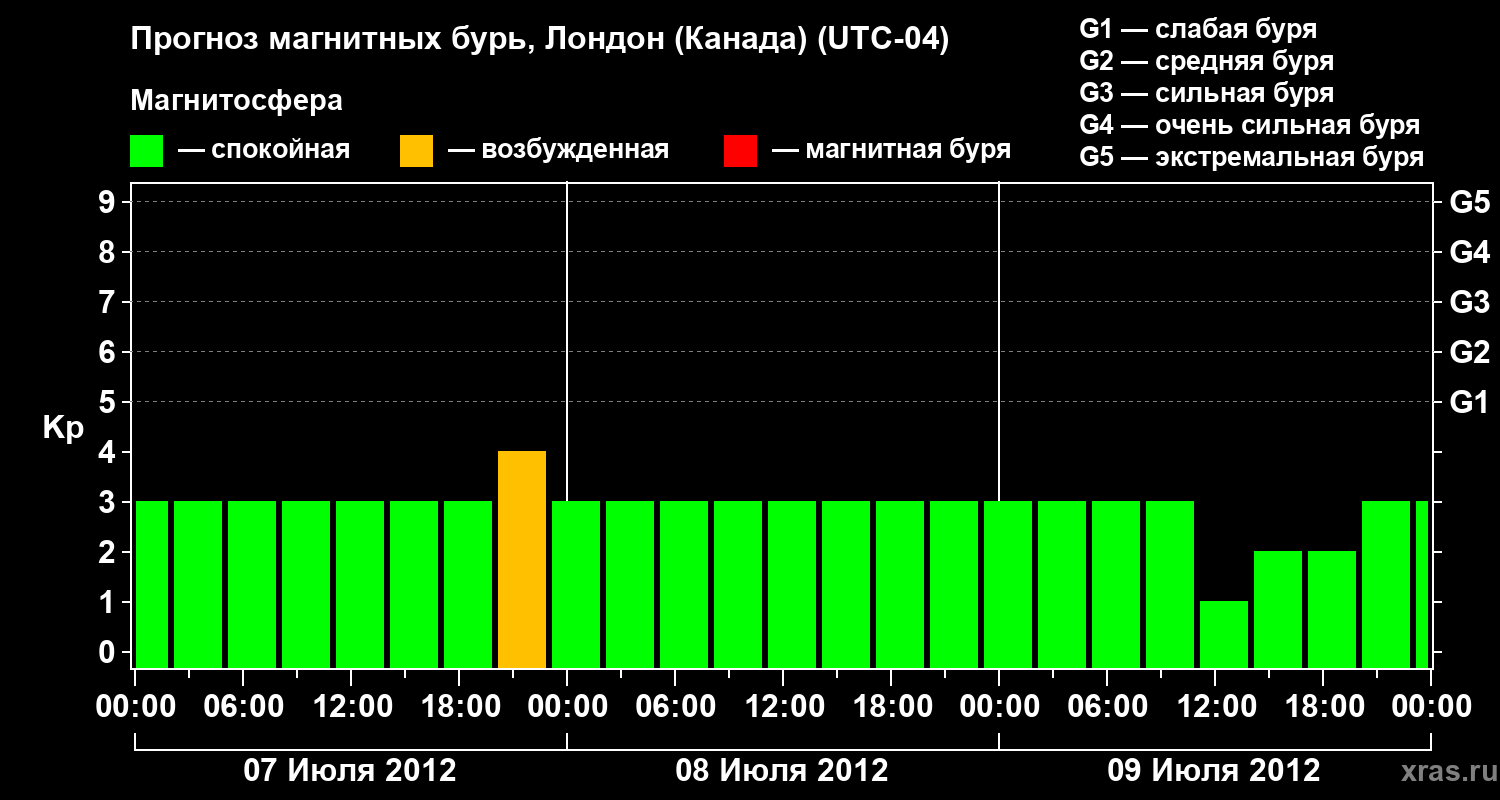 Прогноз магнитных бурь Лондоне (Канада) — 7 июля 2012 года