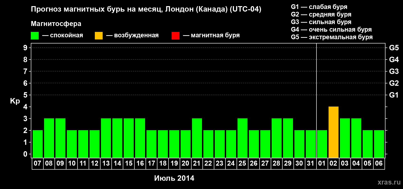 Прогноз магнитных бурь Лондоне (Канада) — 7 июля 2014 года