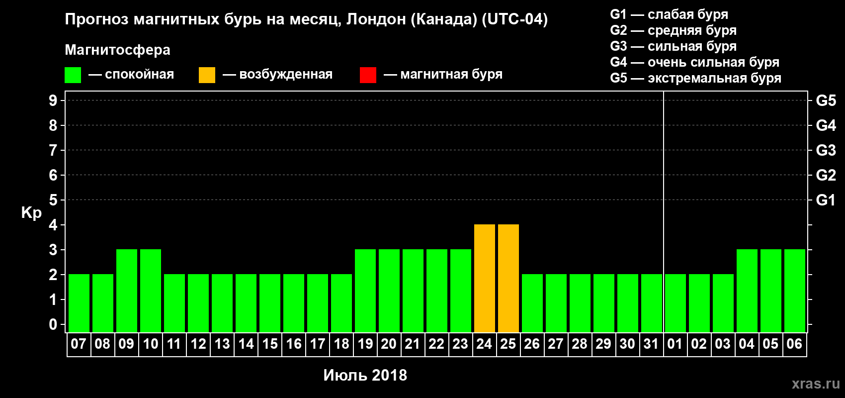 Прогноз магнитных бурь Лондоне (Канада) — 7 июля 2018 года