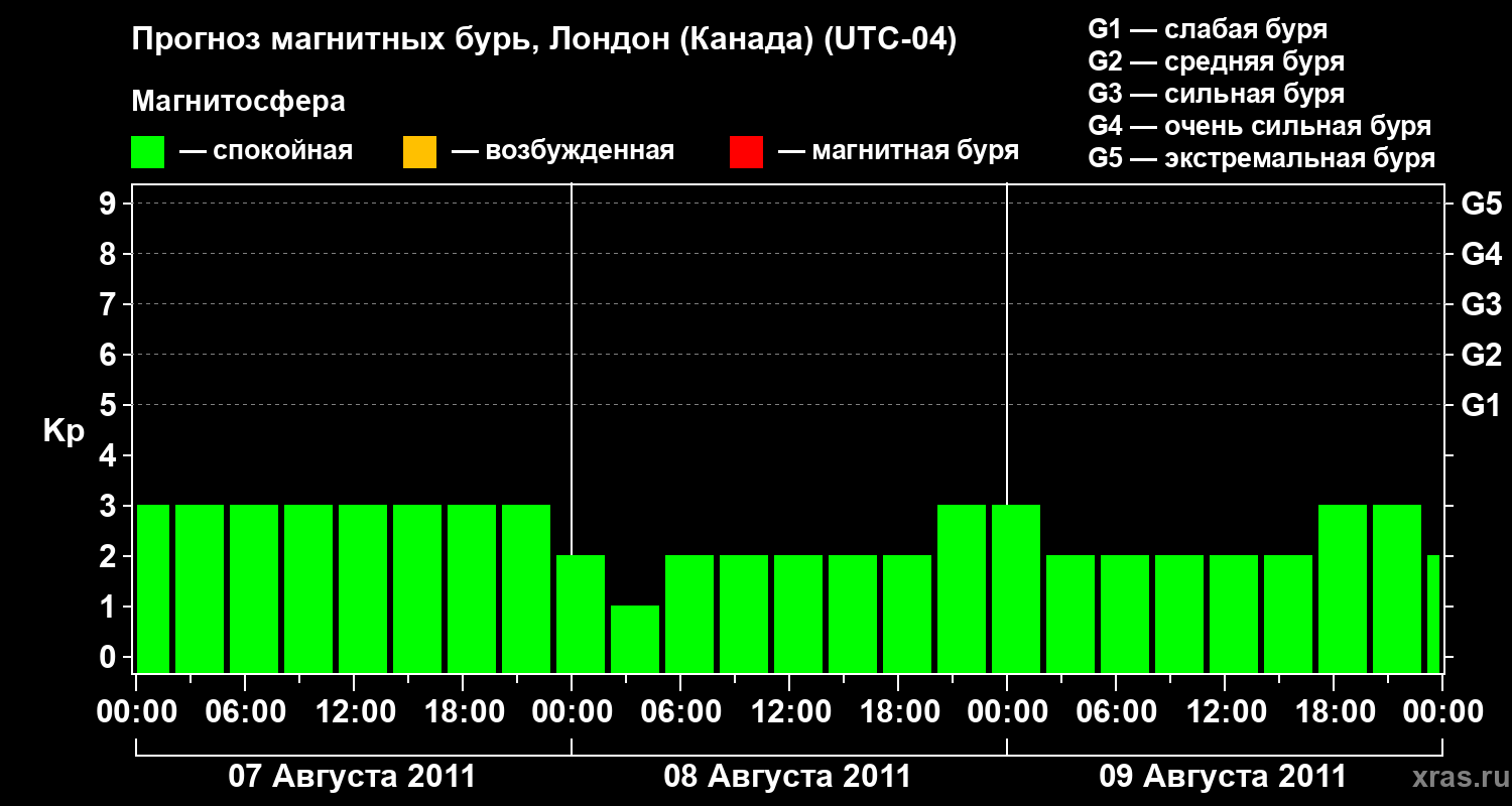 Прогноз магнитных бурь Лондоне (Канада) — 7 августа 2011 года