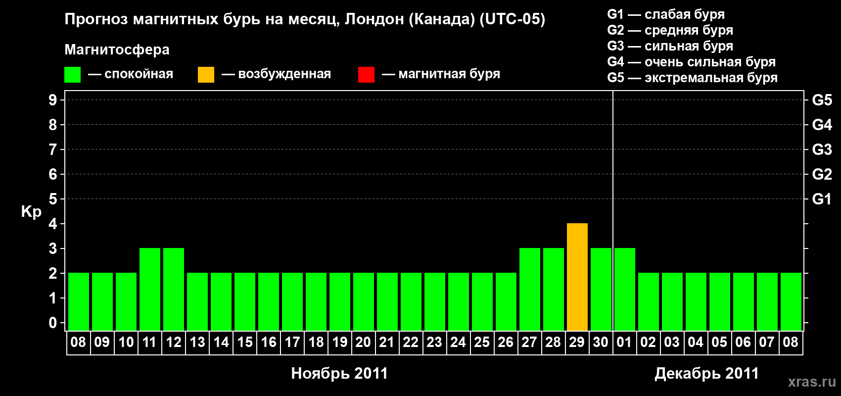 Прогноз магнитных бурь Лондоне (Канада) — 8 ноября 2011 года