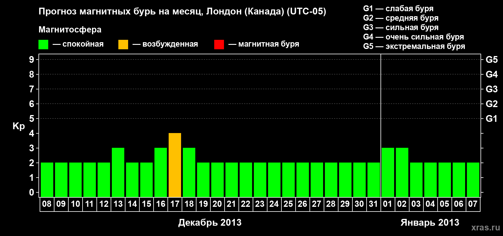 Прогноз магнитных бурь Лондоне (Канада) — 8 декабря 2012 года