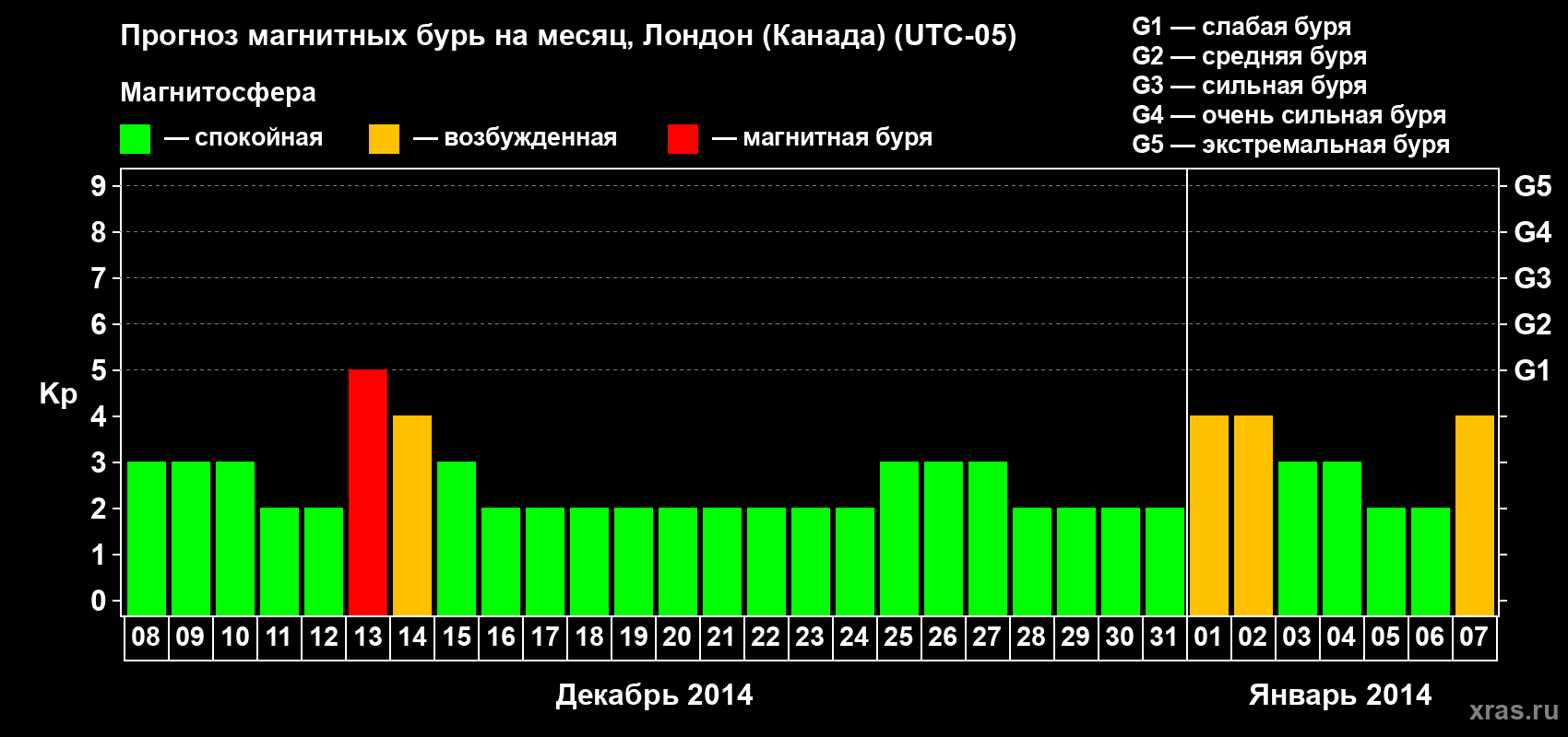 Прогноз магнитных бурь Лондоне (Канада) — 8 декабря 2013 года