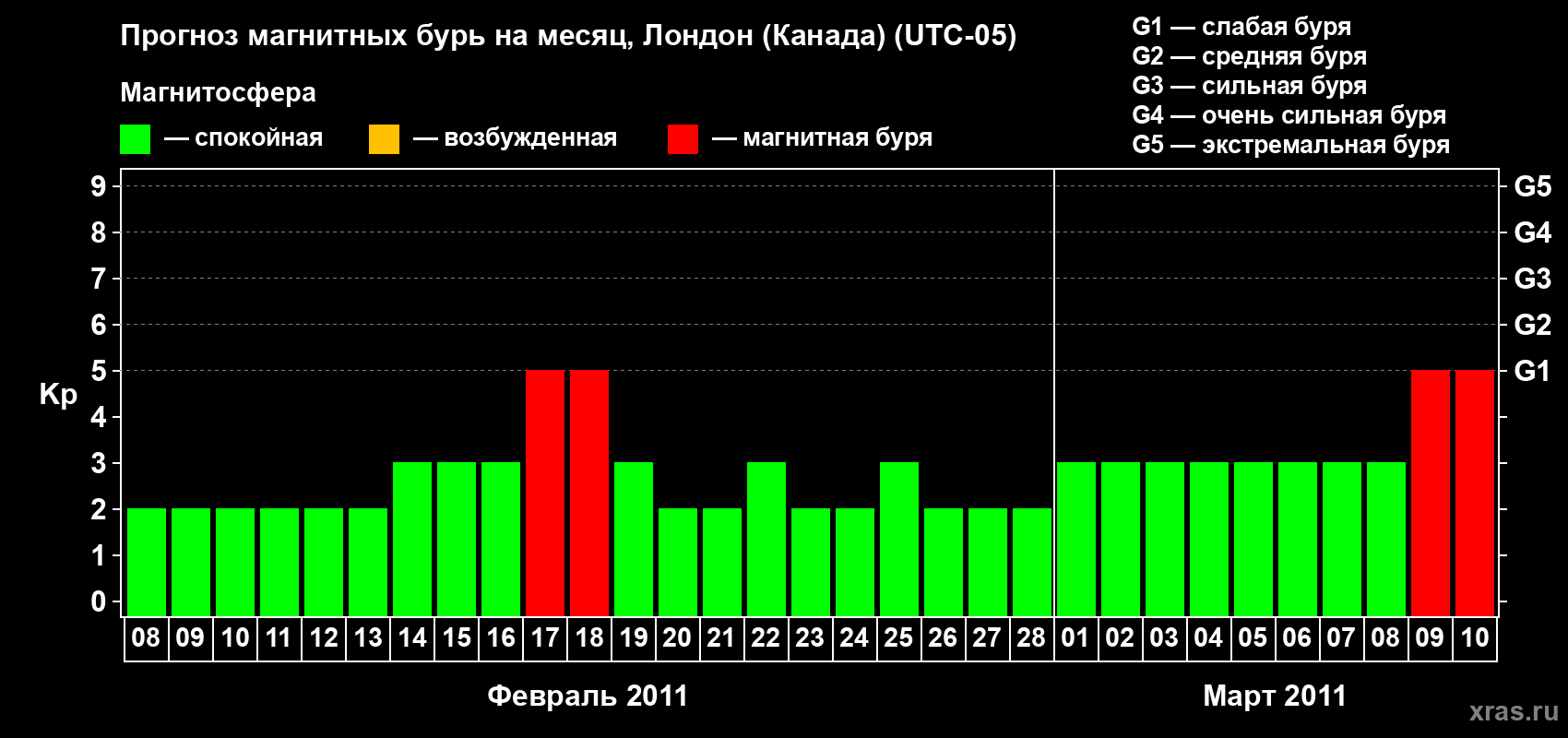 Прогноз магнитных бурь Лондоне (Канада) — 8 февраля 2011 года