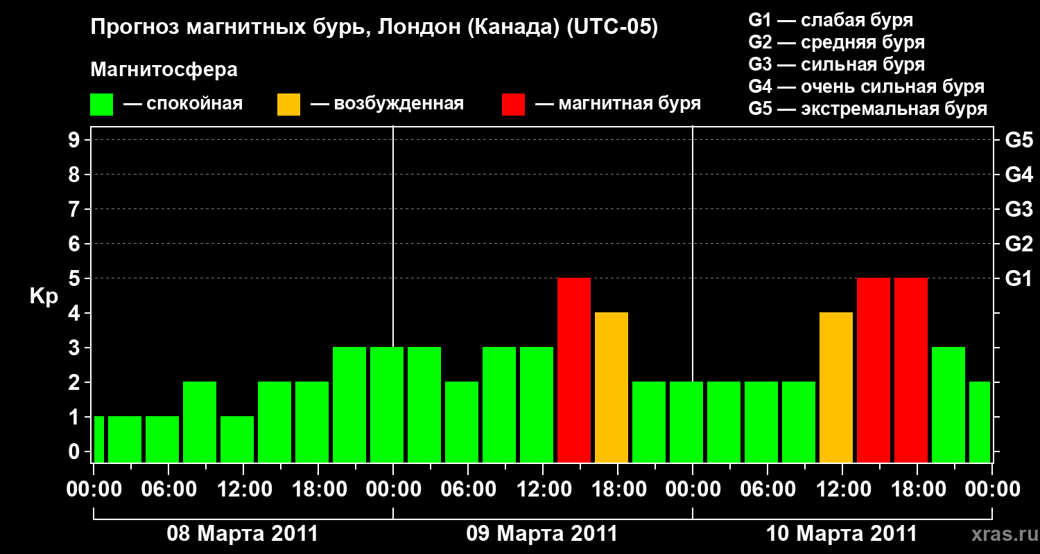 Прогноз магнитных бурь Лондоне (Канада) — 8 марта 2011 года