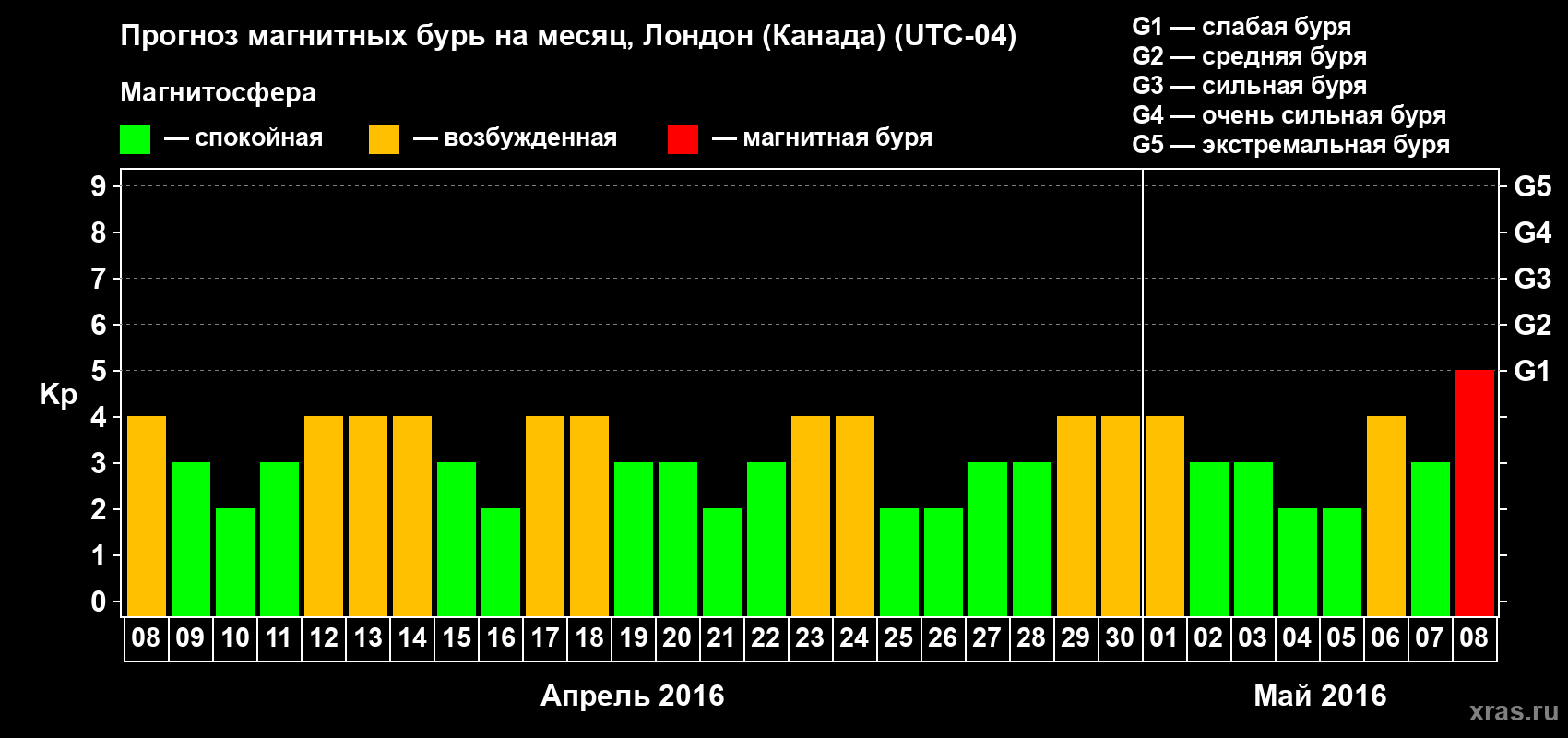 Прогноз магнитных бурь Лондоне (Канада) — 8 апреля 2016 года