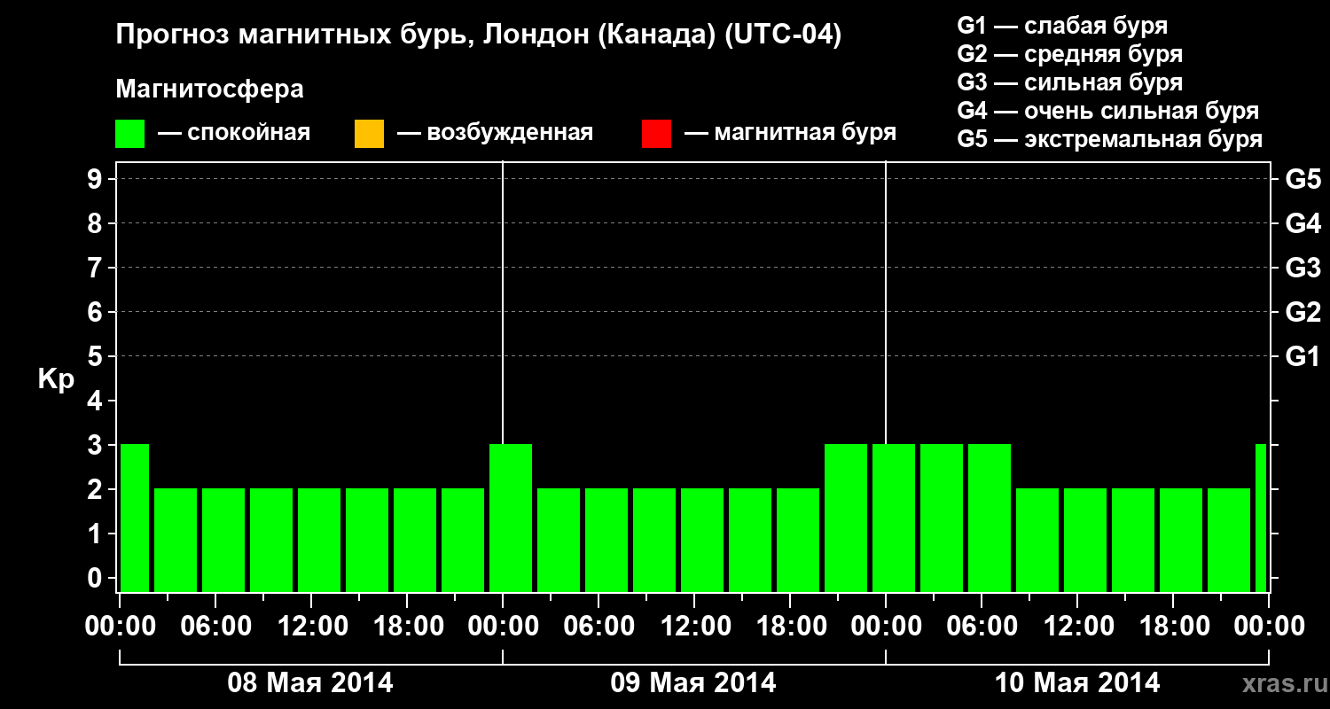 Прогноз магнитных бурь Лондоне (Канада) — 8 мая 2014 года